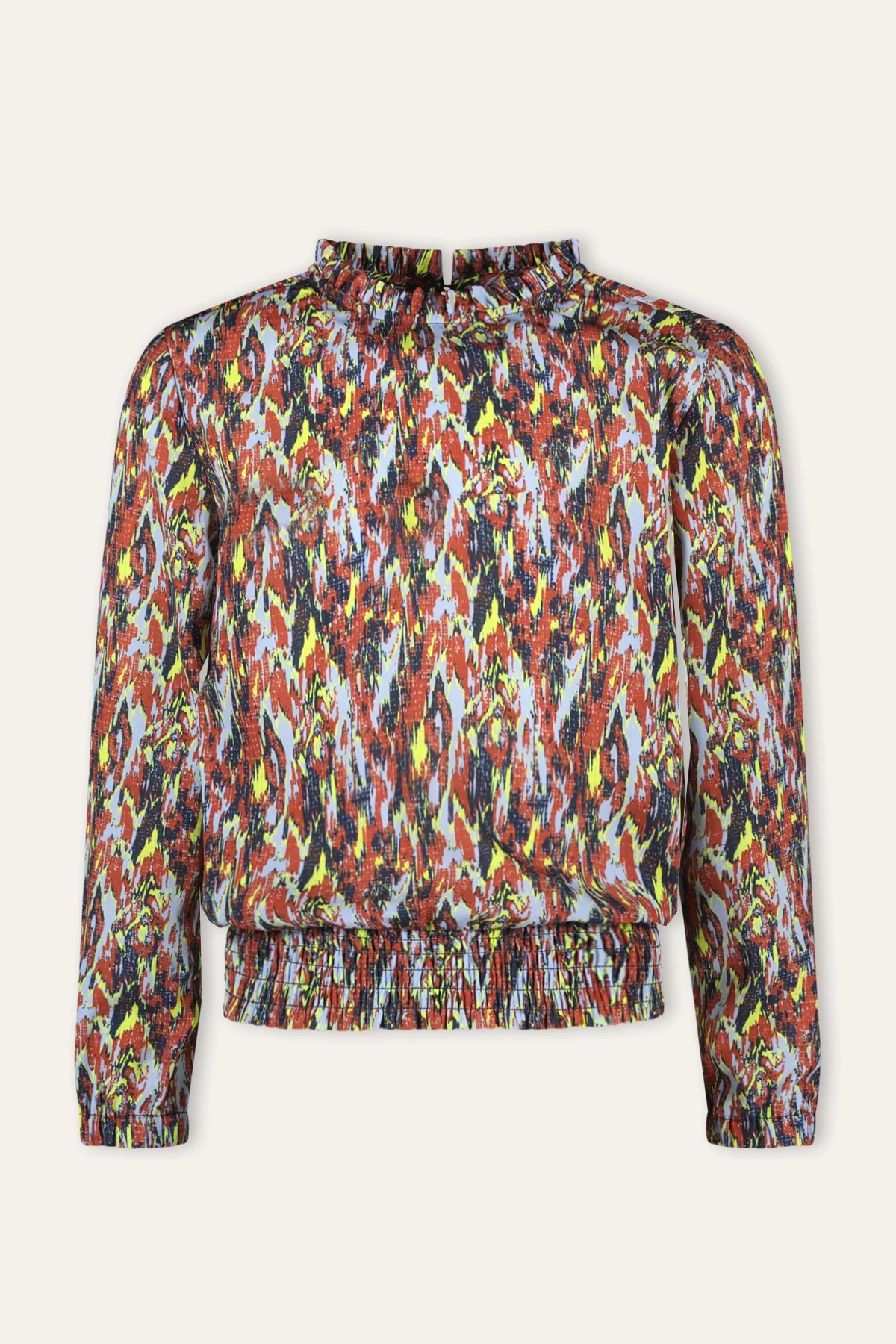 Blouse Bella is heerlijk te combineren met een denim of bij een van de B.Nosy – B.Ambitious items! De blouse heeft een geweven stof met een subtiele structuur en is gemaakt van gerecycled polyester. De blouse heeft een gave allover print en is voorzien van elastiek aan de cuffs en de waistband.