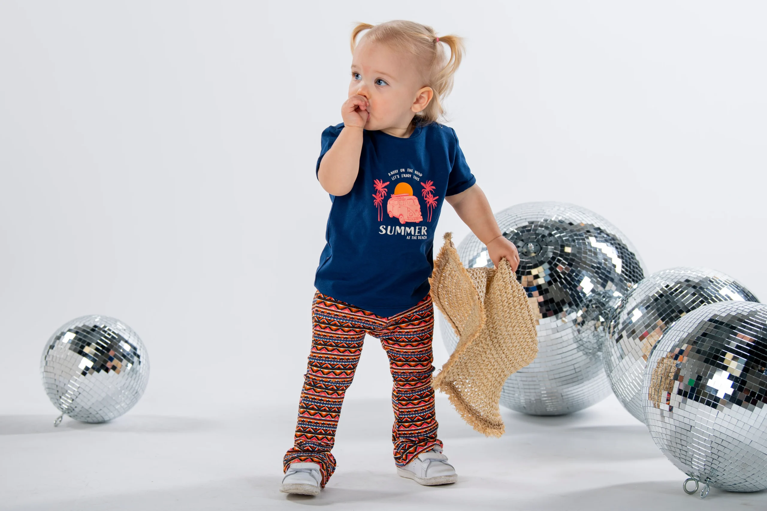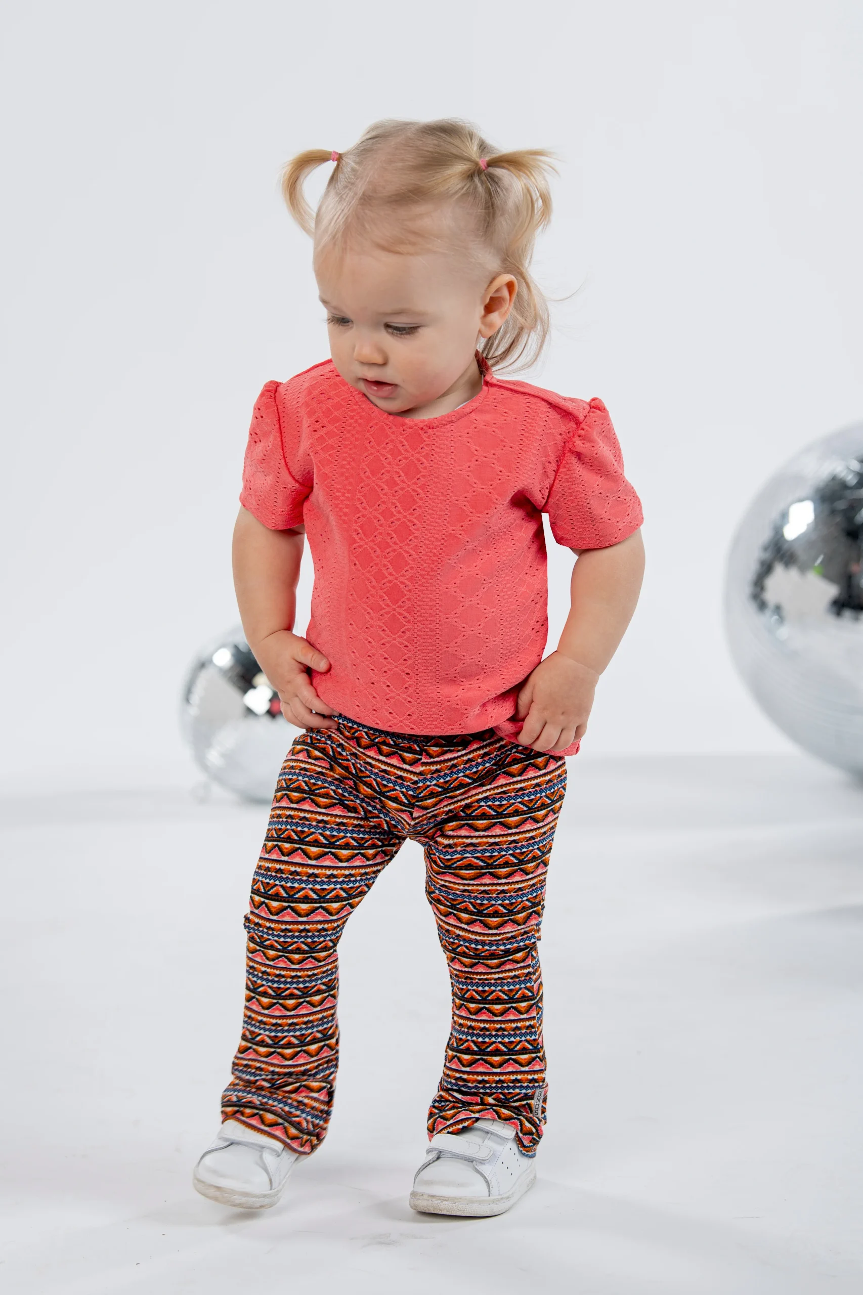 Hoe leuk is dit flared broekje met aztec print! Combineer met een van onze t-shirtje en jouw kleintje is ready. Gemaakt van recycled polyester.