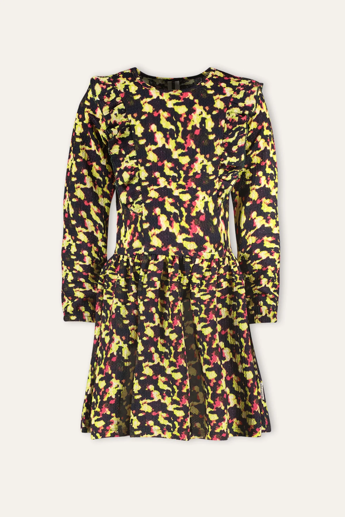 B.Nosy Doutzen dress is een echte blikvanger. De jurk heeft een te gekke print met diverse kleuren die de jurk uniek maken, ruches en een elastische mouwopening. Daarnaast heeft de jurk veel stretch waardoor hij heerlijk comfortabel draagt. Combineer hem voor de koude dagen met de Mia mailot in het zwart en het toffe gilet Gaby in het zwart! Gemaakt van recycled polyester.