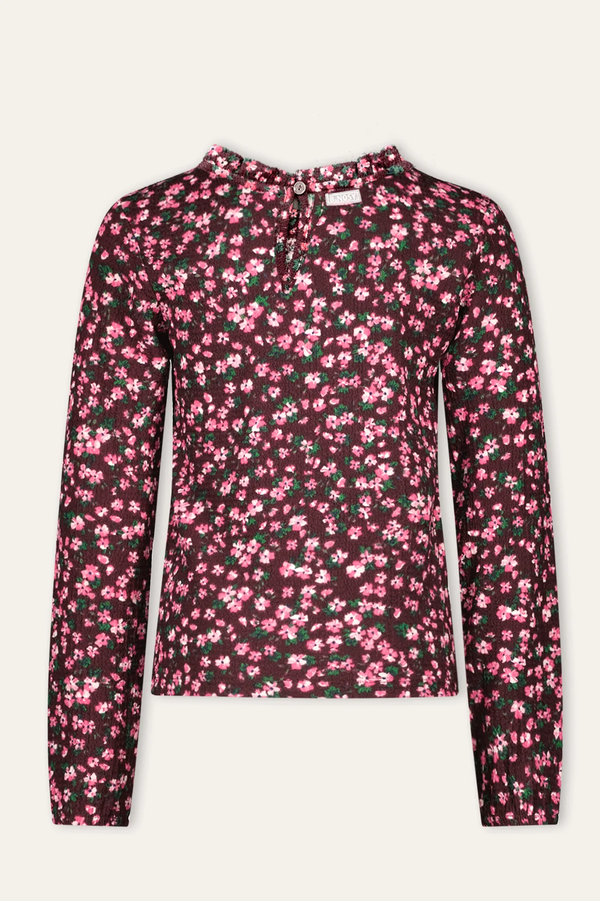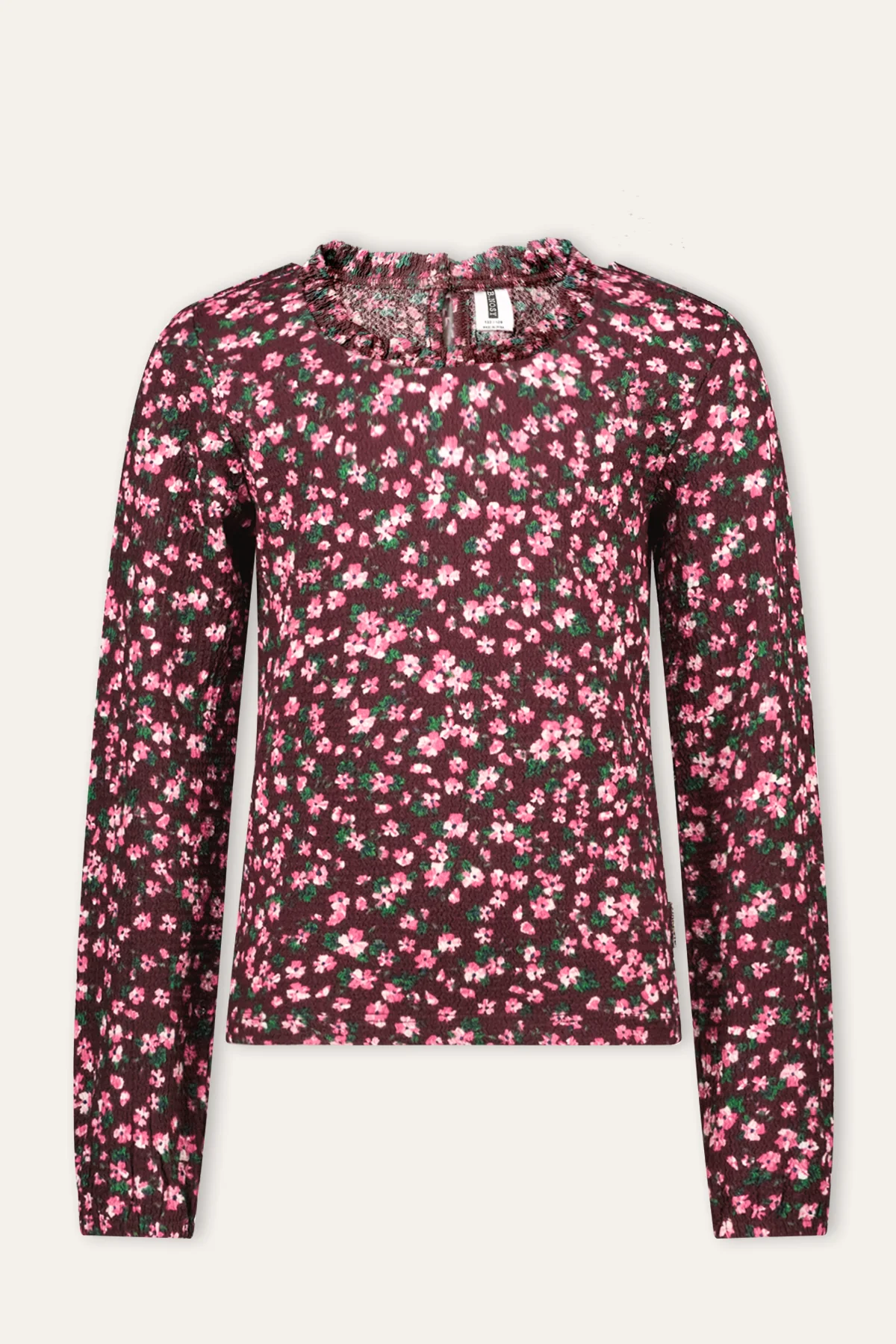 B.Nosy, B.Elegant! Dit shirtje is een echte musthave. Het roze met groene bloemenprintje maken dit item super vrolijk en elegant. Combineer dit shirtje met lange mouwen leuk met een denim rokje of broek!