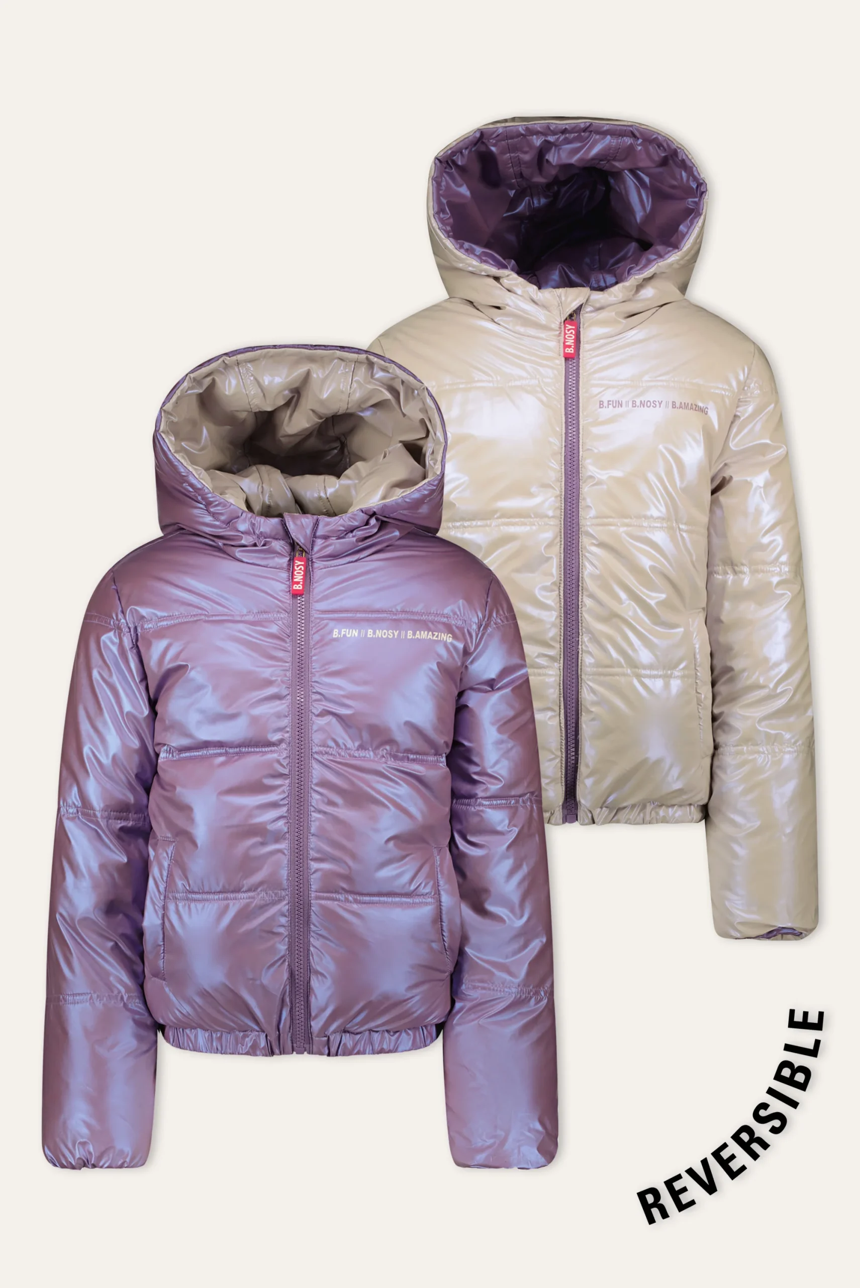 Ben jij aan klaar voor de kou deze winter? Met deze winterjas zit je zeker goed. Jas Jacky is reversible en heeft aan elke zijde een fantastische kleur! Kiezen gaat lastig worden! Ga jij voor lila, of toch liever voor parelmoer wit? Of wissel jij tussen beide? Alles is mogelijk met deze jas! De jas heeft een heerlijk warme padding en is gemaakt van gerecycled polyester.