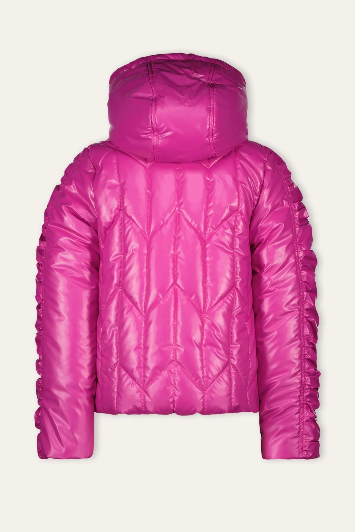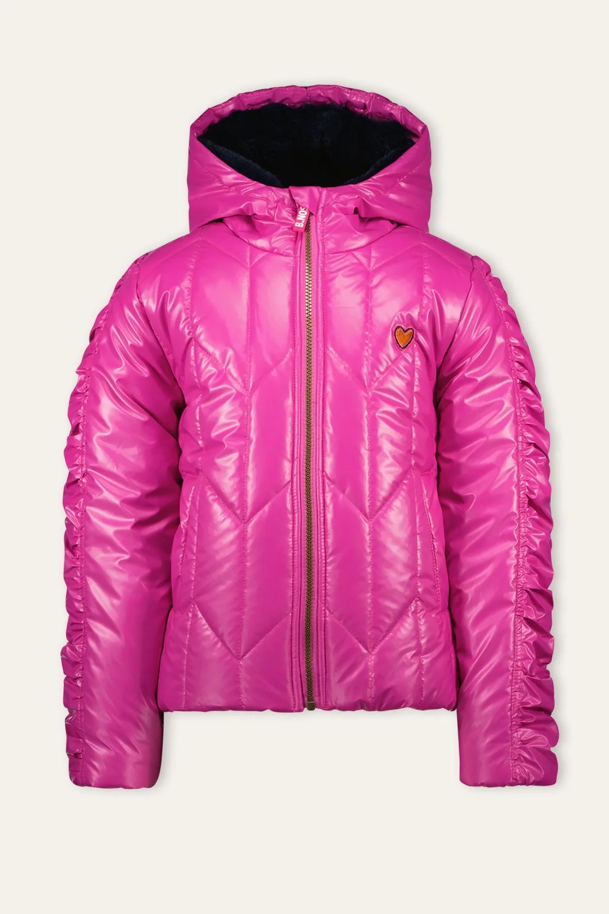 Pretty in pink! Onze B.Noy jas Joy is een echte eyecatcher en ook nog eens heerlijk warm. Deze jas is gemaakt van 100% recycled polyster en heeft een leuk speels plooi effect op de mouwen.