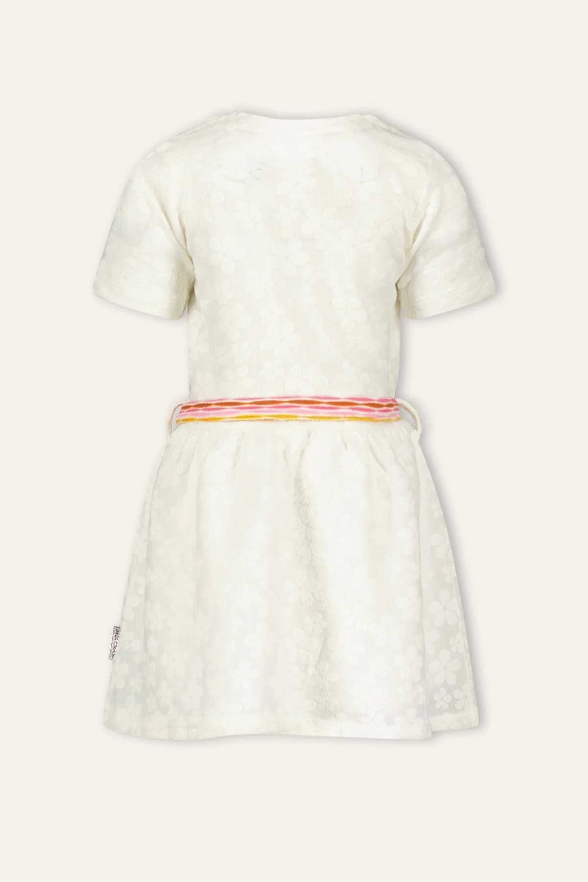 De schattige Danie jurk is een droom voor elke kleine fashionista! Gemaakt van een zachte stretchstof met bloemenpatroon voor ultiem comfort en bewegingsvrijheid. De touwriem om de middel geeft een speels en stijlvol accent. Perfect voor elke gelegenheid, van een feestje tot een zomerse dag!