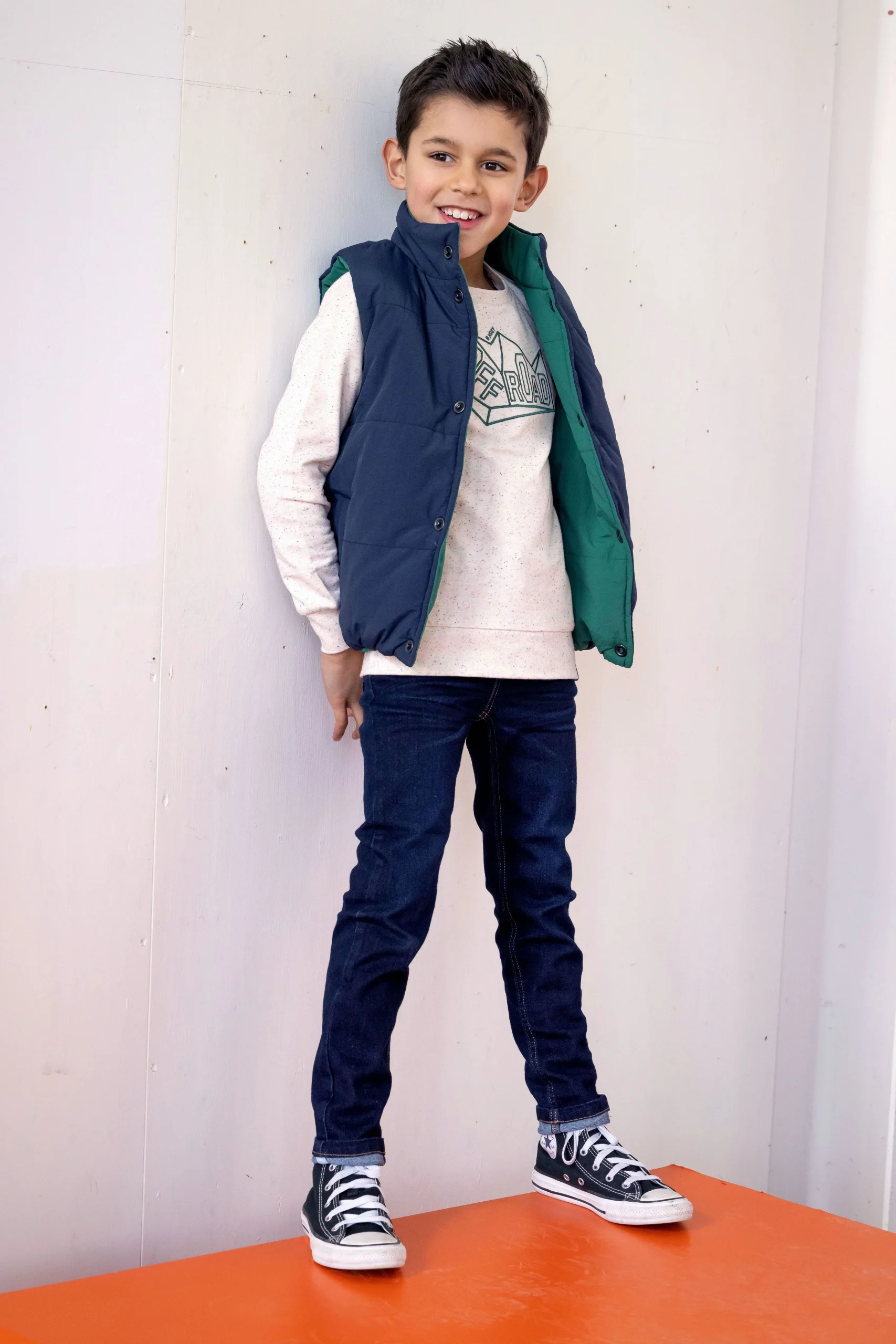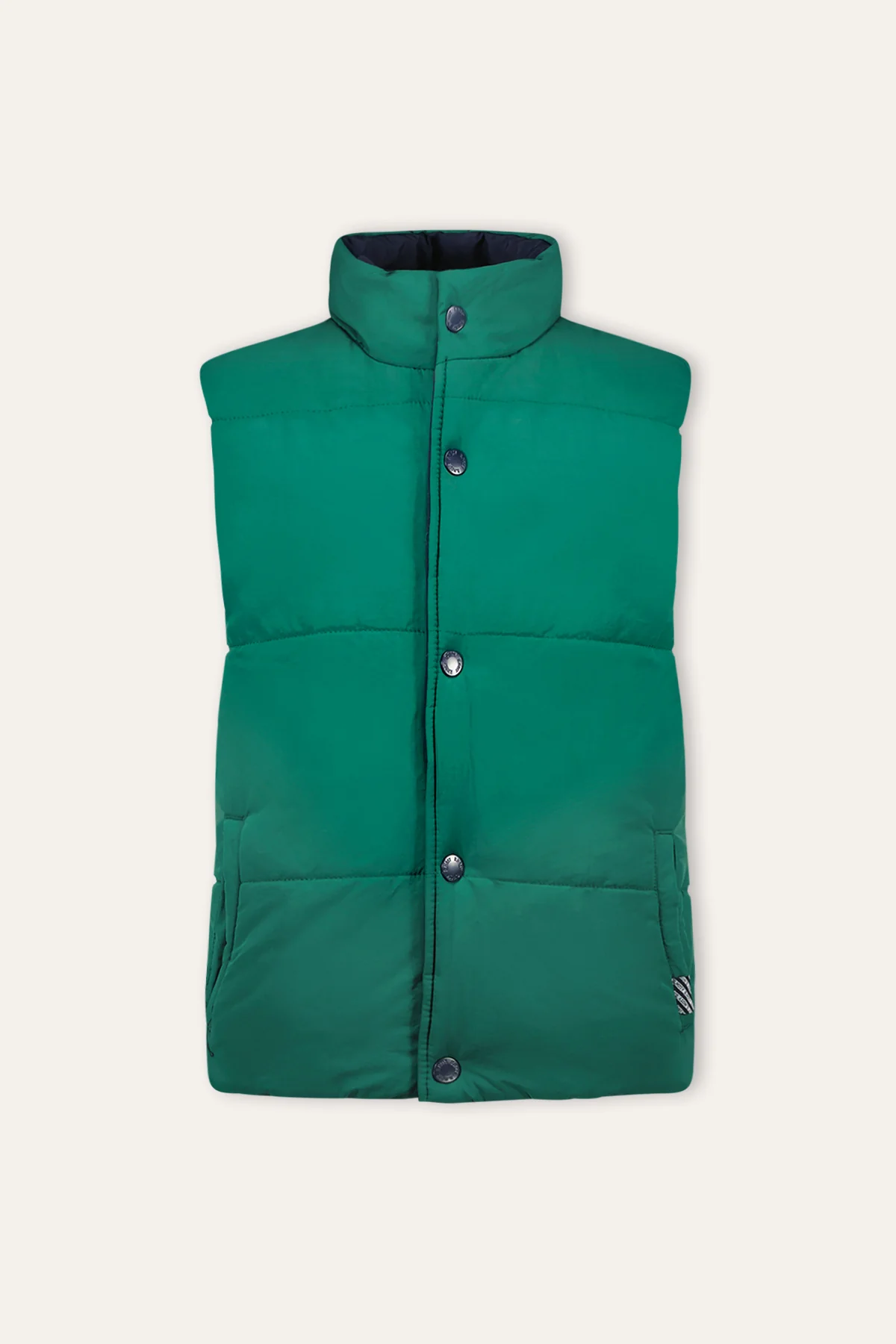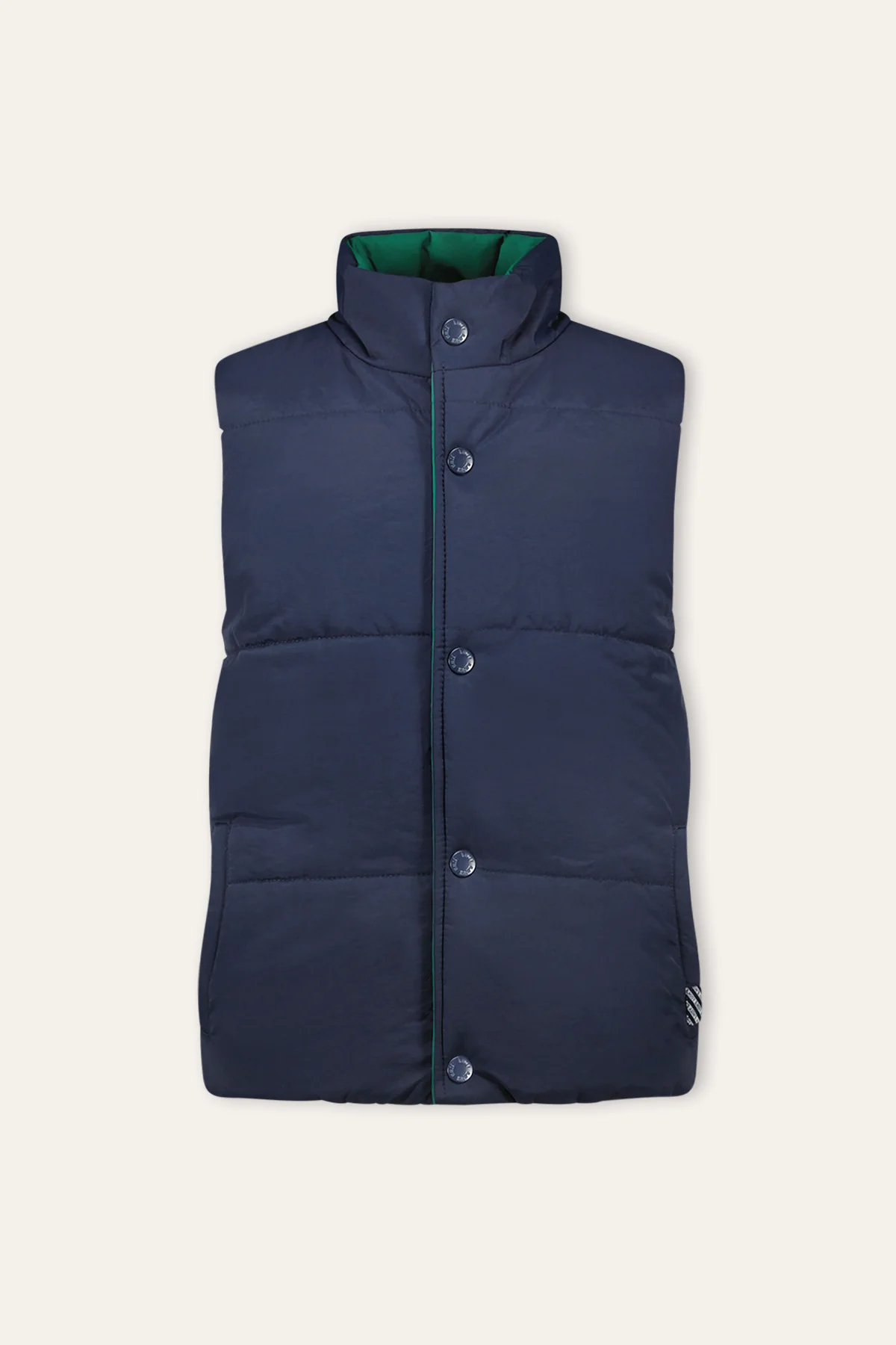 Met deze reversible bodywarmer kun je moeiteloos switchen tussen twee verschillende looks, afhankelijk van je stemming of outfit. Aan de ene kant een stoere donkerblauwe kleur en aan de andere kant een trendy donkergroene tint. Of het nu gaat om een dagje buiten spelen of een dagje naar school, deze bodywarmer is perfect.