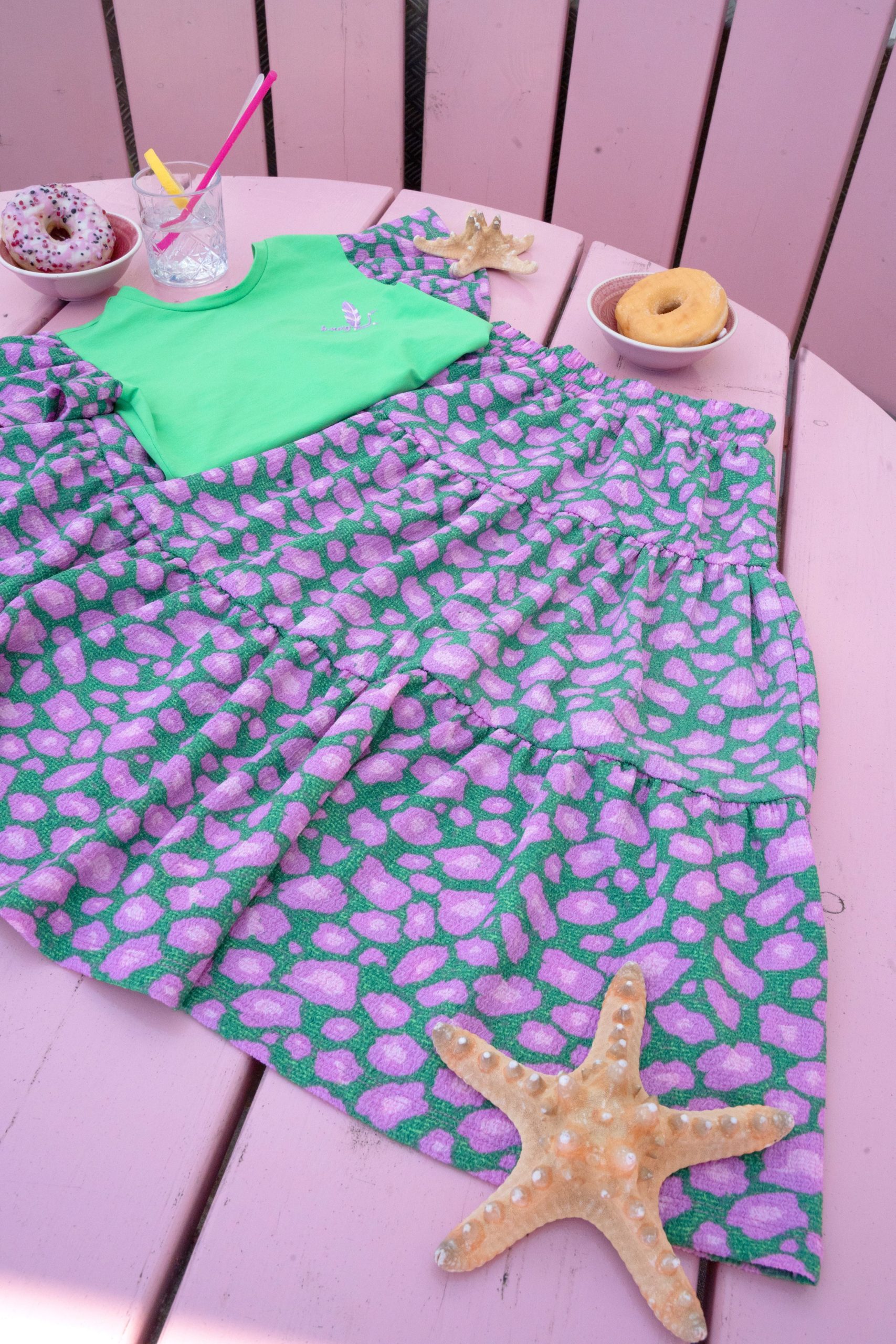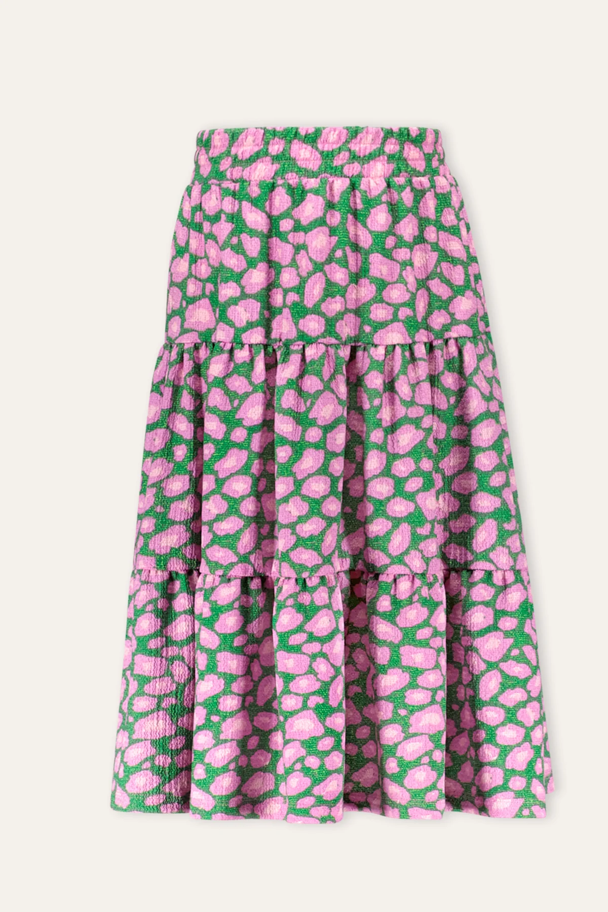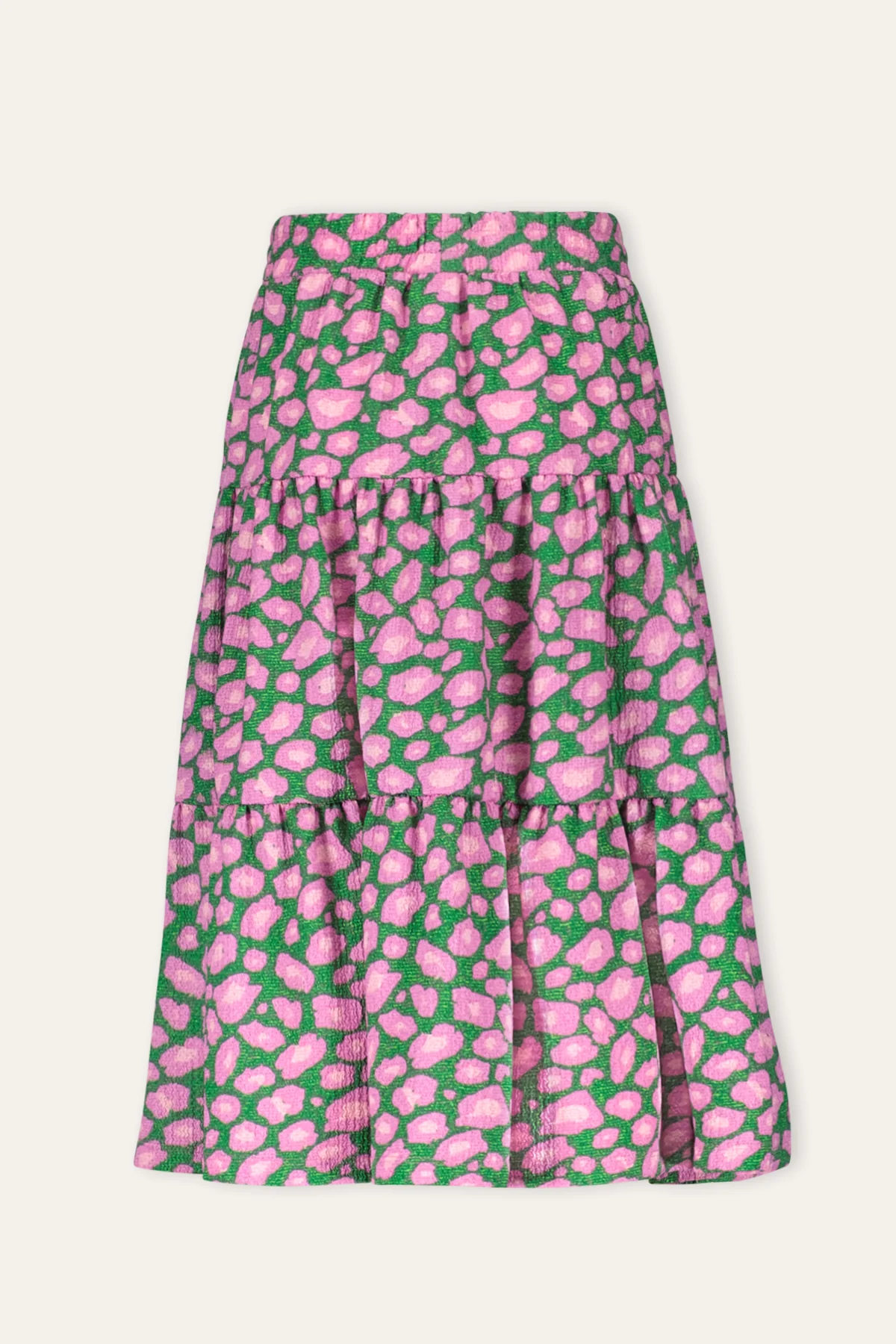 Deze zomerse rok met kleurrijke print is een echte eyecatcher. De rok heeft drie stroken en valt soepel en los tot over die knie. Combineer met top Bobbi voor een super toffe outfit! Gemaakt van recycled polyester.