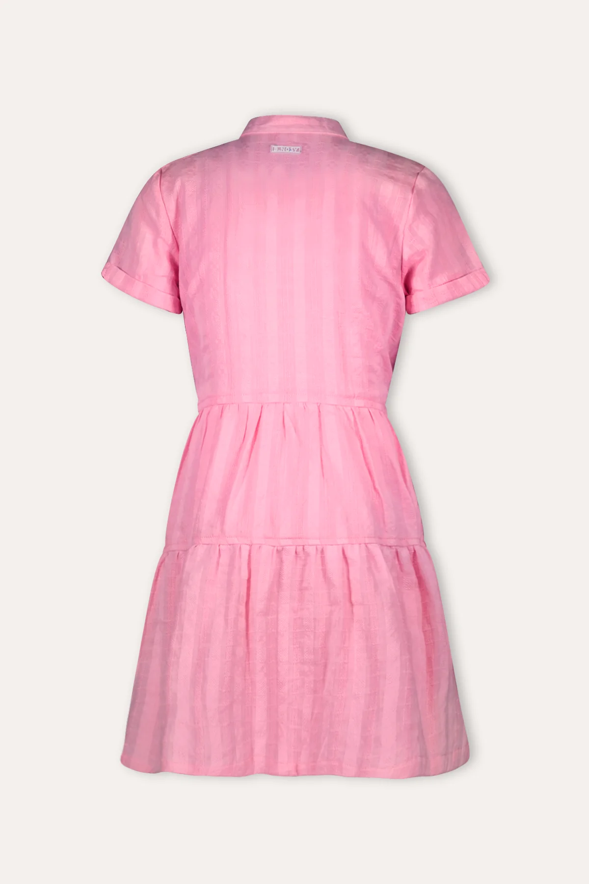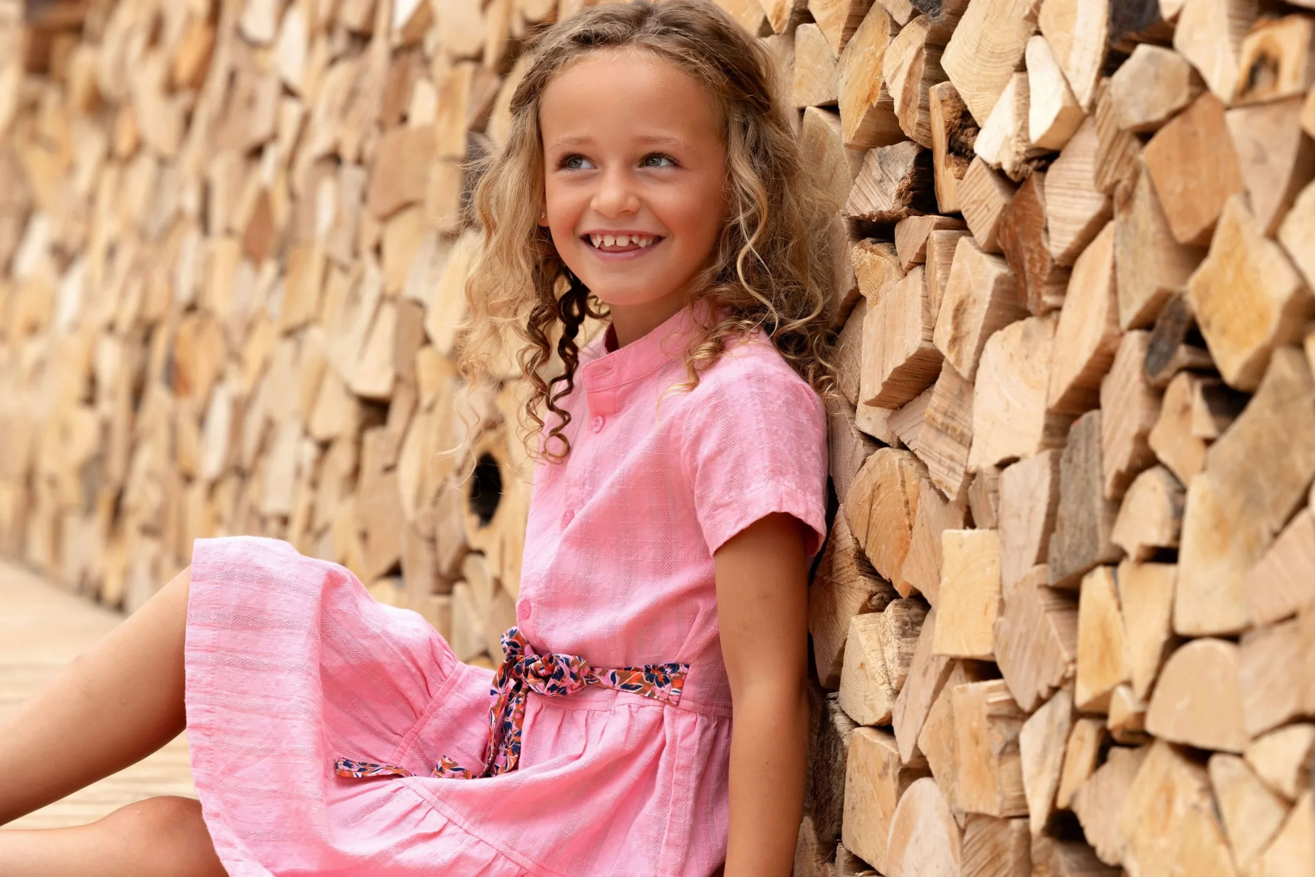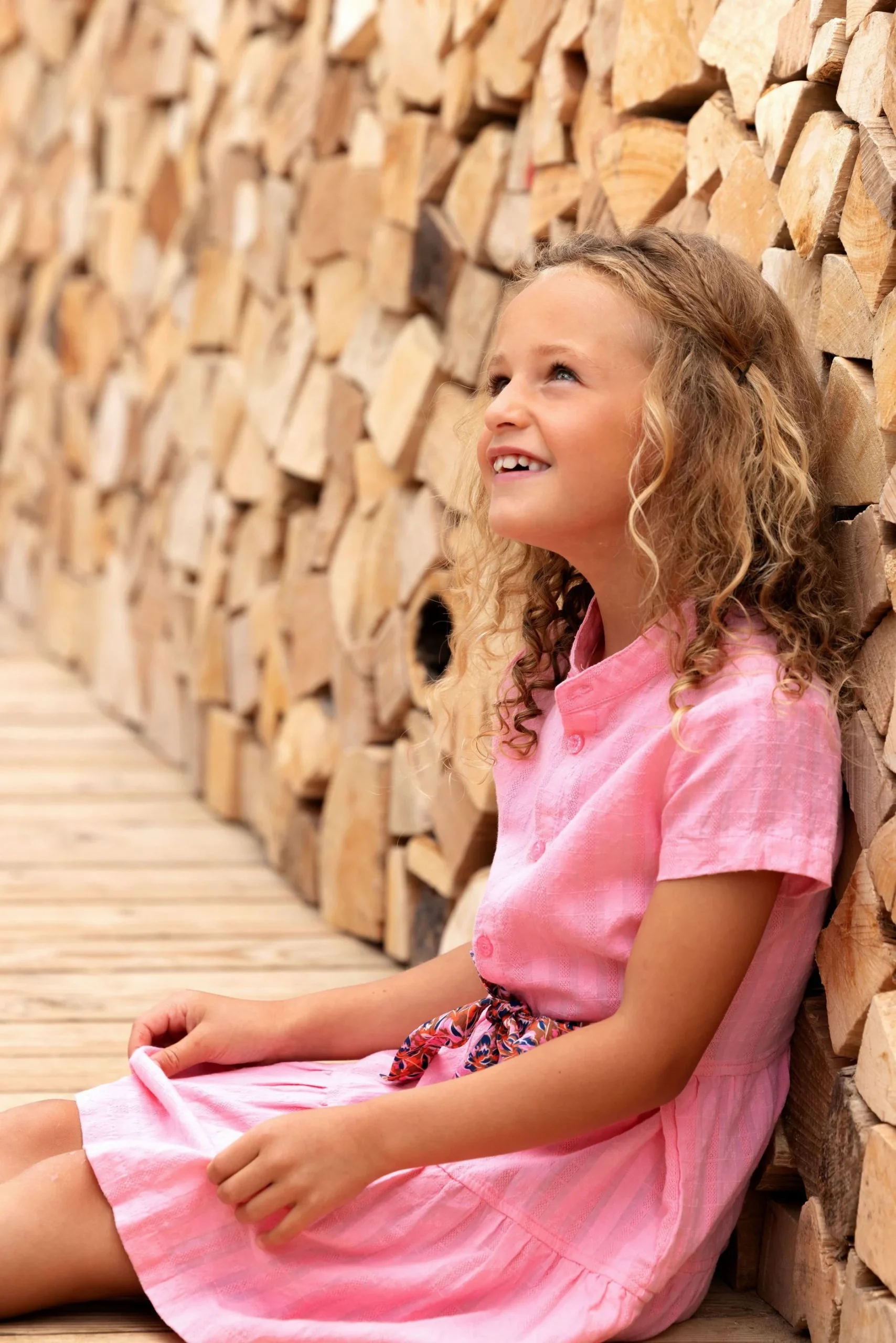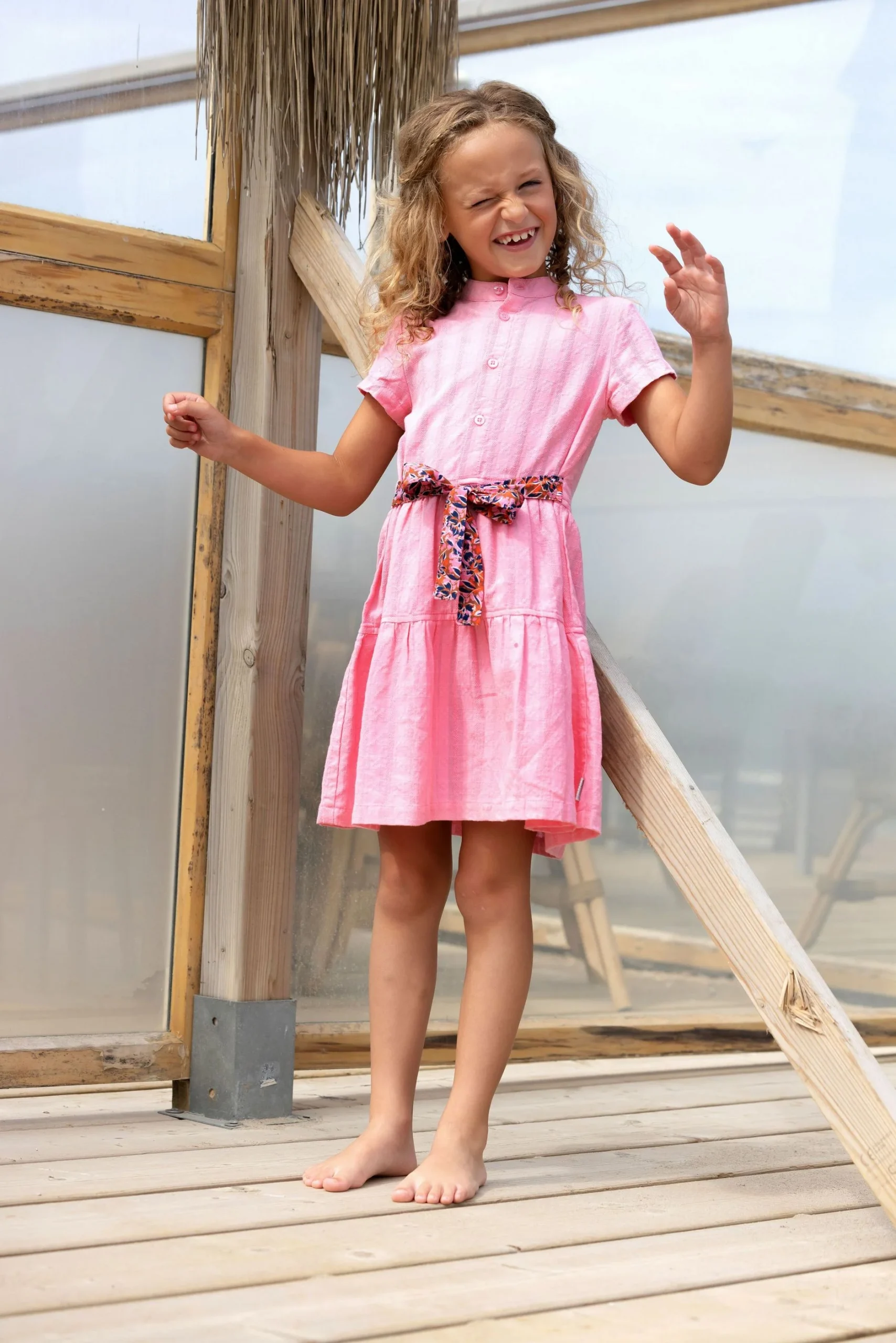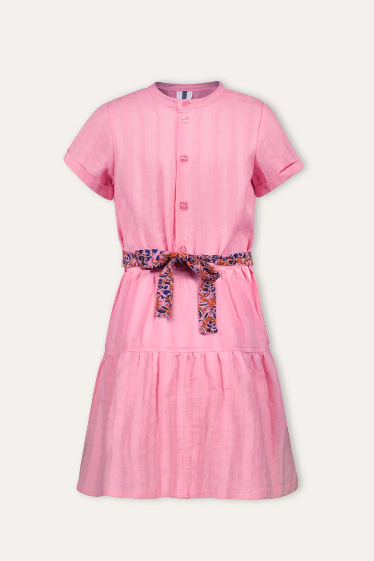Dit mooie roze jurkje Sammie is gemaakt van 100% katoen. De jurk heeft een knoopsluiting aan de voorzijde en wordt geleverd met leuk riempje. Met deze jurk zit je goed voor elke gelegenheid.