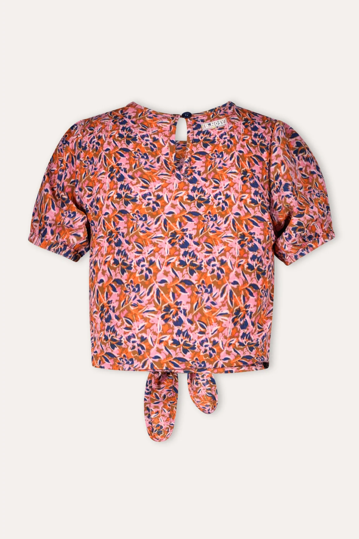 Met deze warme bloemachtige print kleurt alles goed op. Het woven stofje voelt fijn en luchtig aan. De blouse heeft een knoopsluiting en een strikdetail aan de onderkant.