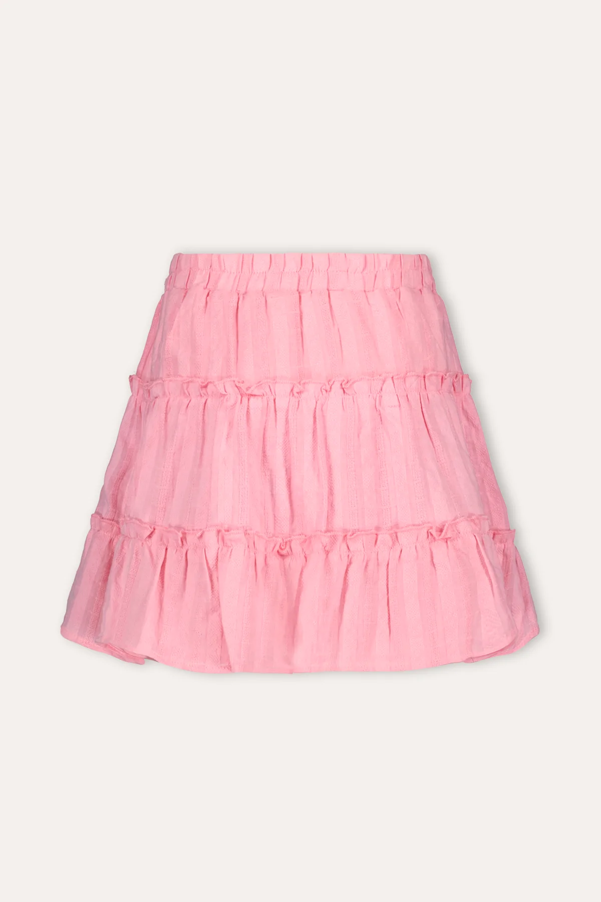 Dit fijne roze rokje valt tot boven de knie en is gemaakt van 100% katoen. Combineer de rok met een van de mooie blousjes uit onze collectie en maakt de outfit af met een fijne vest Salina!