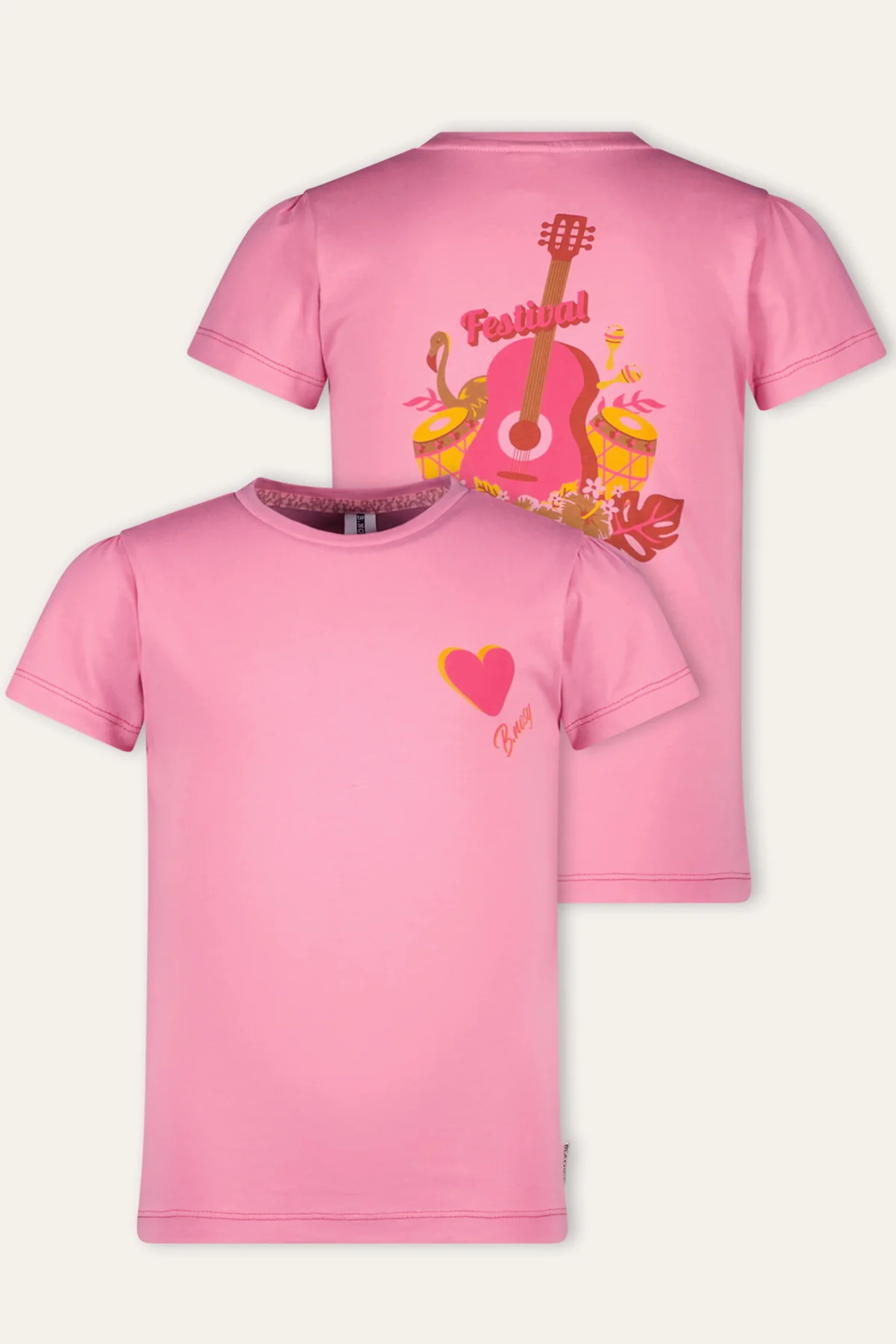 Een basic T-shirt in een mooie kleur kan niet ontbreken in je kledingkast. De top heeft ene kleine print op de voorzijde en een toffe print aan de achterkant. Combineer met rokje Ruth voor een girly outfit! Gemaakt van Biologisch Katoen.