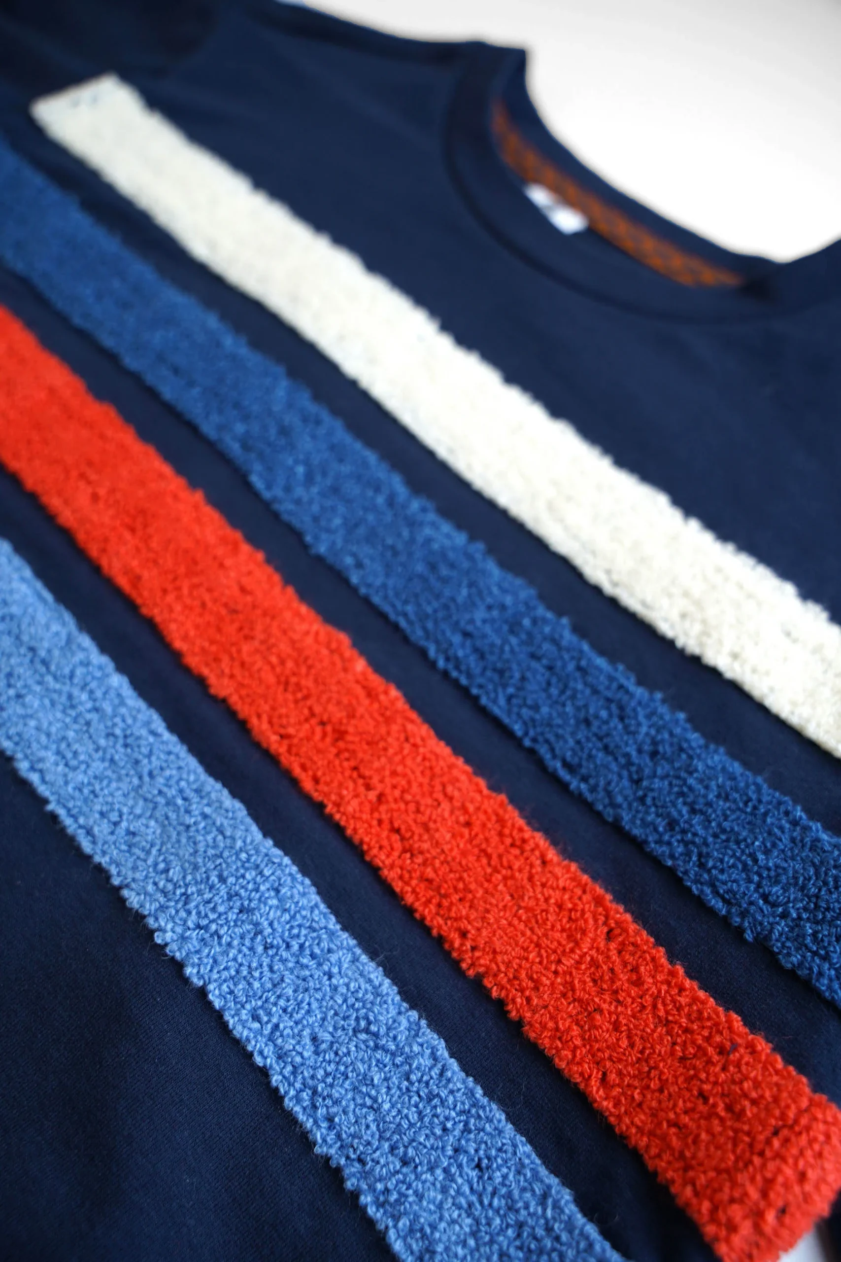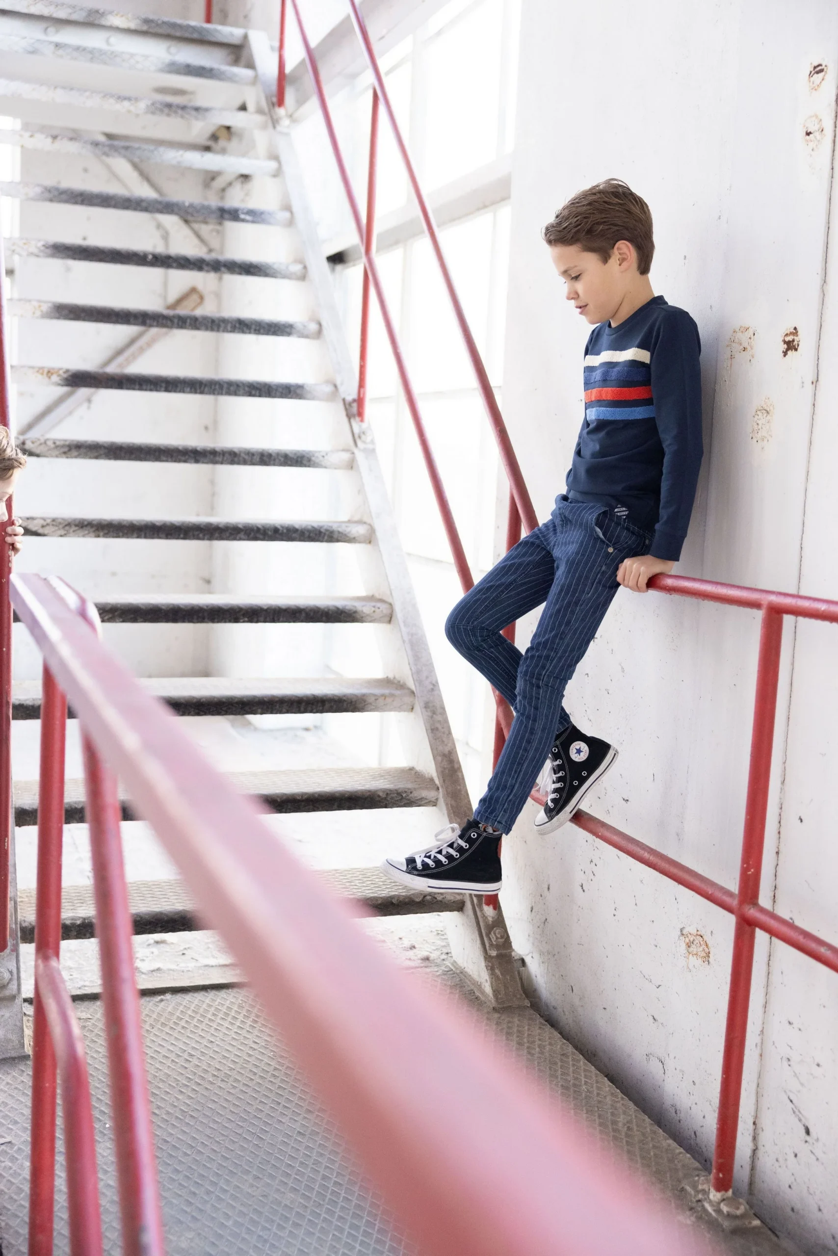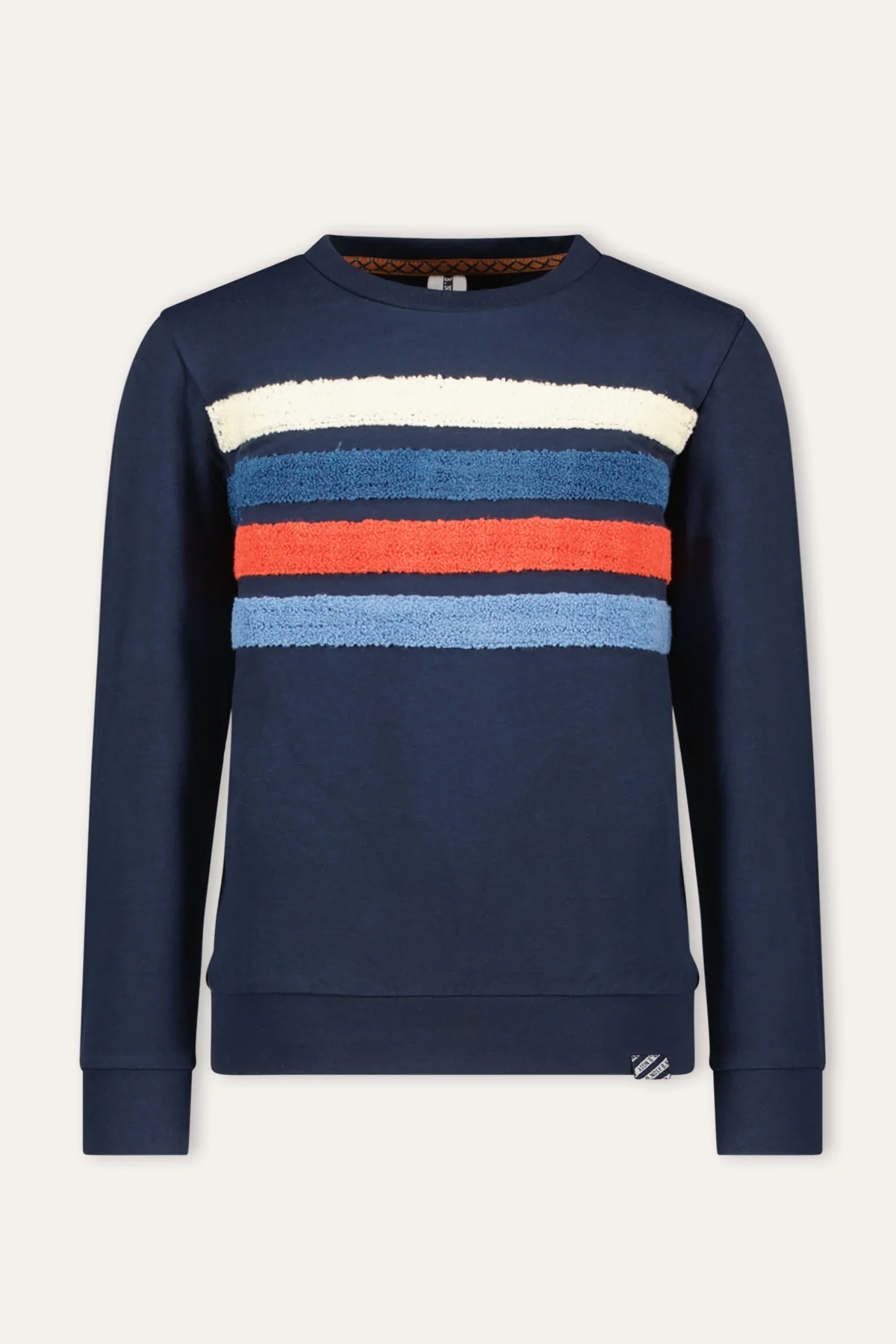 Trui Ted is een echte musthave voor jouw zoon dit jaar! De trui heeft een mooie donkerblauwe kleur en leuke kleurrijke strepen op de borst. Combineer deze trui met een toffe spijkerbroek voor een coole look.