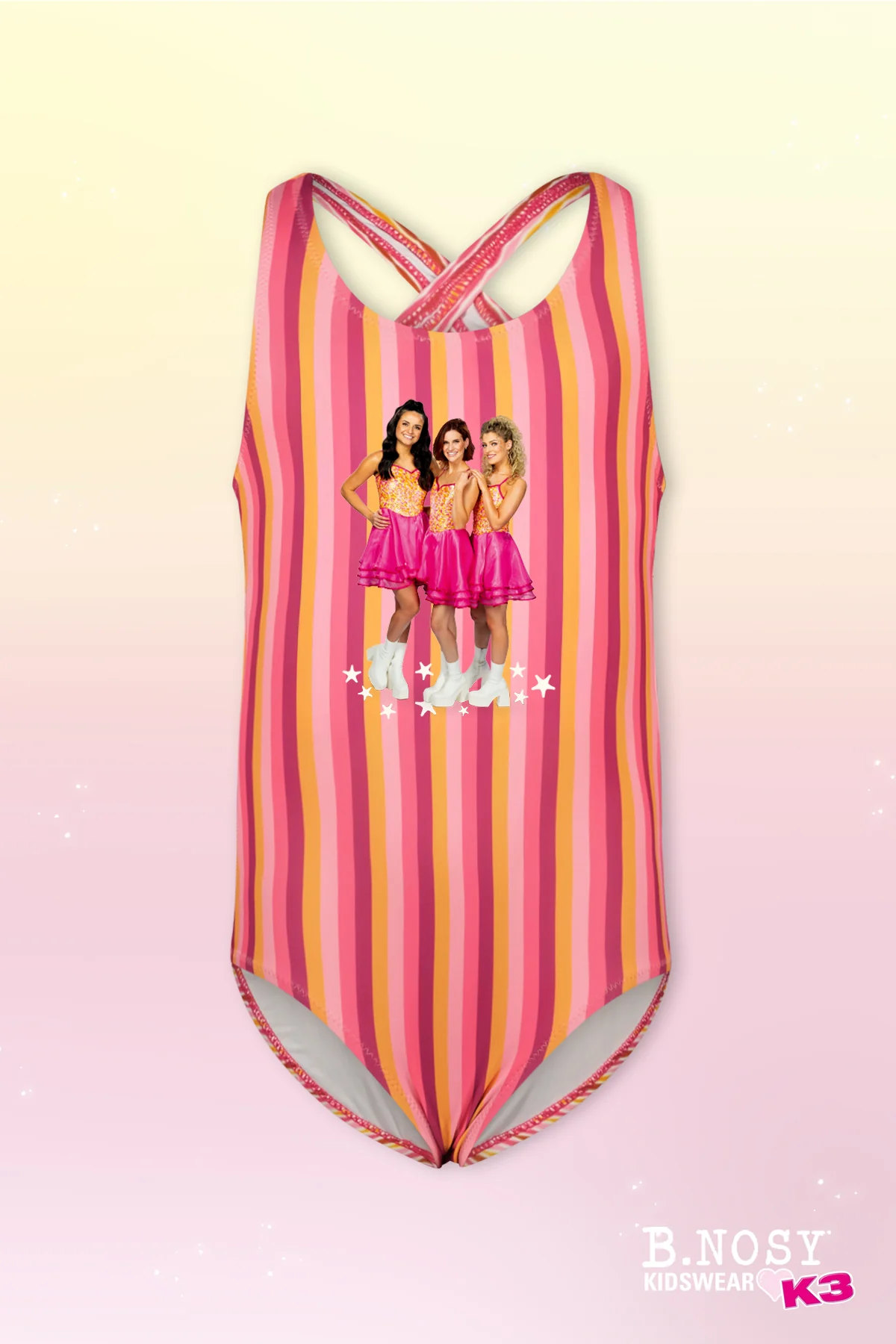 Het B.Nosy x K3 badpak Wila streep in roze is perfect voor de kleine waterrat. Met een schattige streepprint en K3 design is het comfortabel en stijlvol, ideaal voor zwemavonturen! Gemaakt van gerecycled polyester en met een UV laag voor extra bescherming!