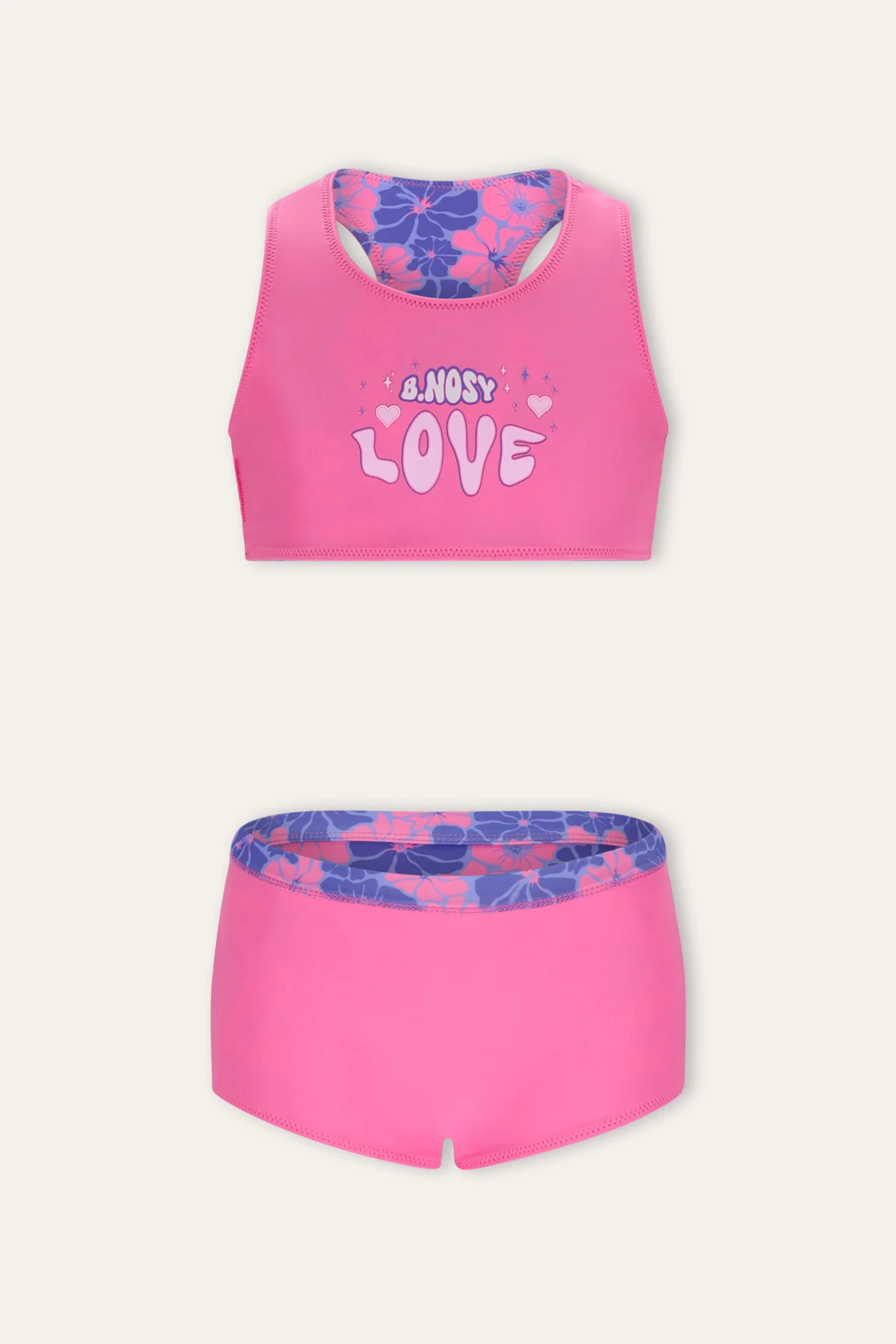 Maak deze zomer onvergetelijk met de vrolijke Bikini Winona Flower! Deze bikini is ontworpen voor eindeloos zwemplezier en laat jouw kleine meid stralen. De bikini is omkeerbaar, met aan de ene kant een effen roze kleur en aan de andere kant een toffe bloemenprint in blauw en roze. Een onmisbaar item voor in de vakantie of bij het zwembad!