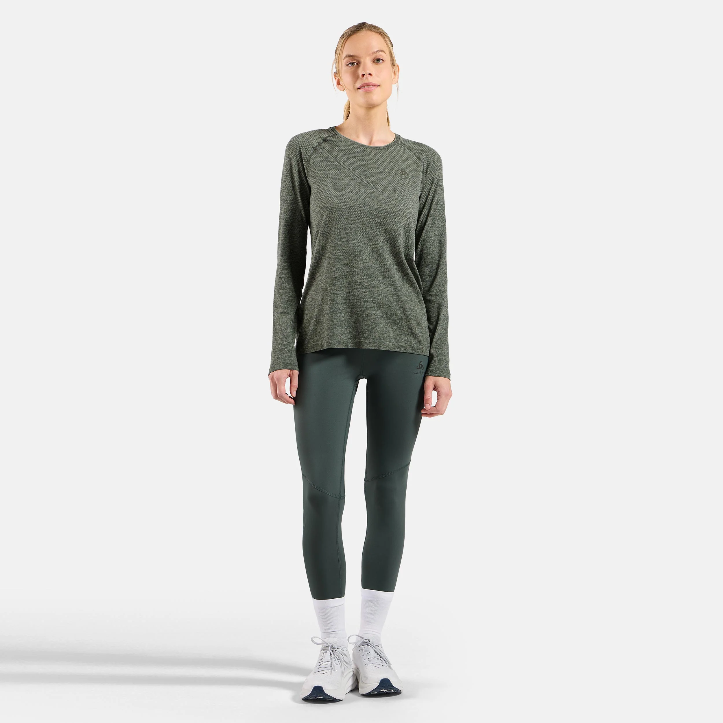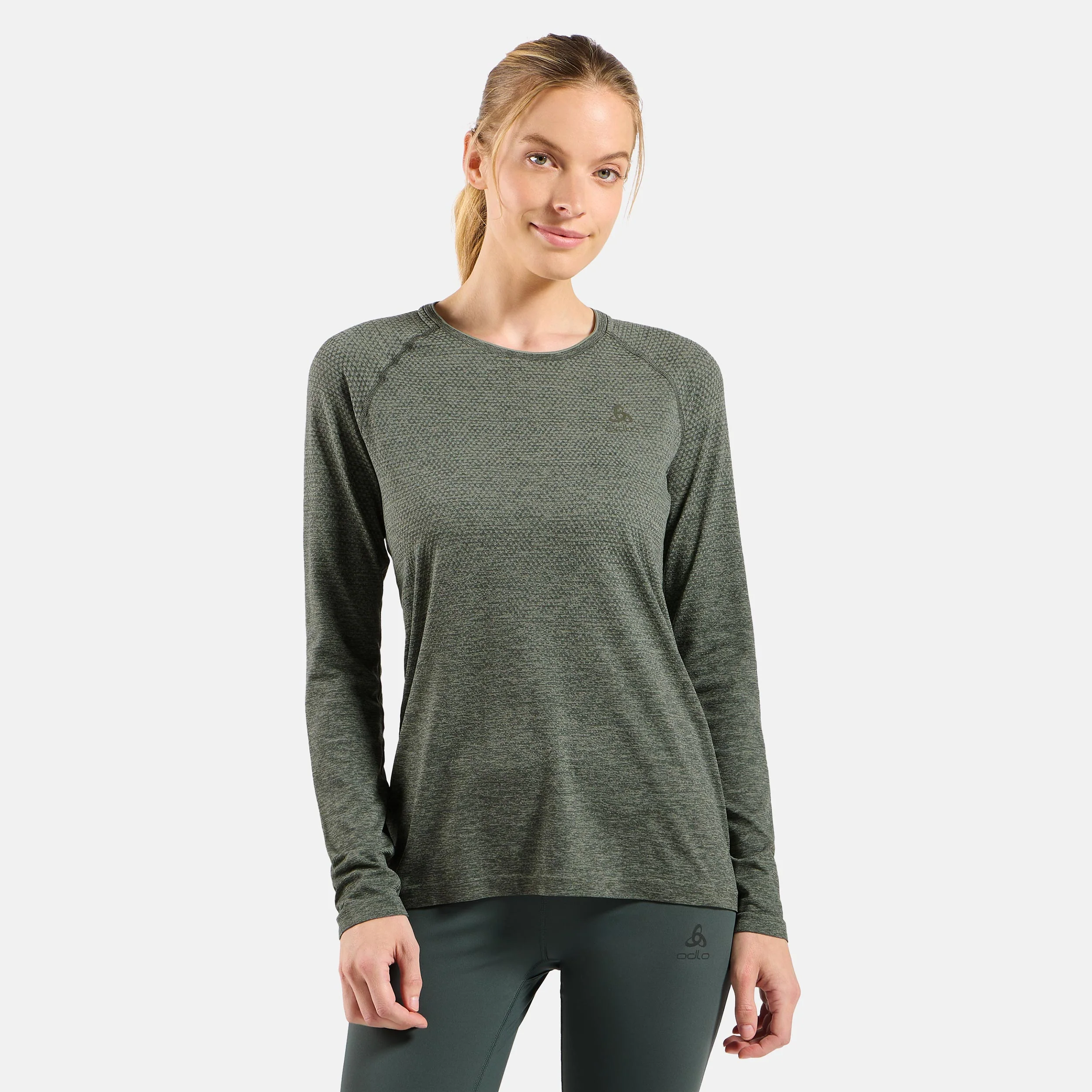 Essential Seamless Crew Neck Longsleeve Dames-olijf