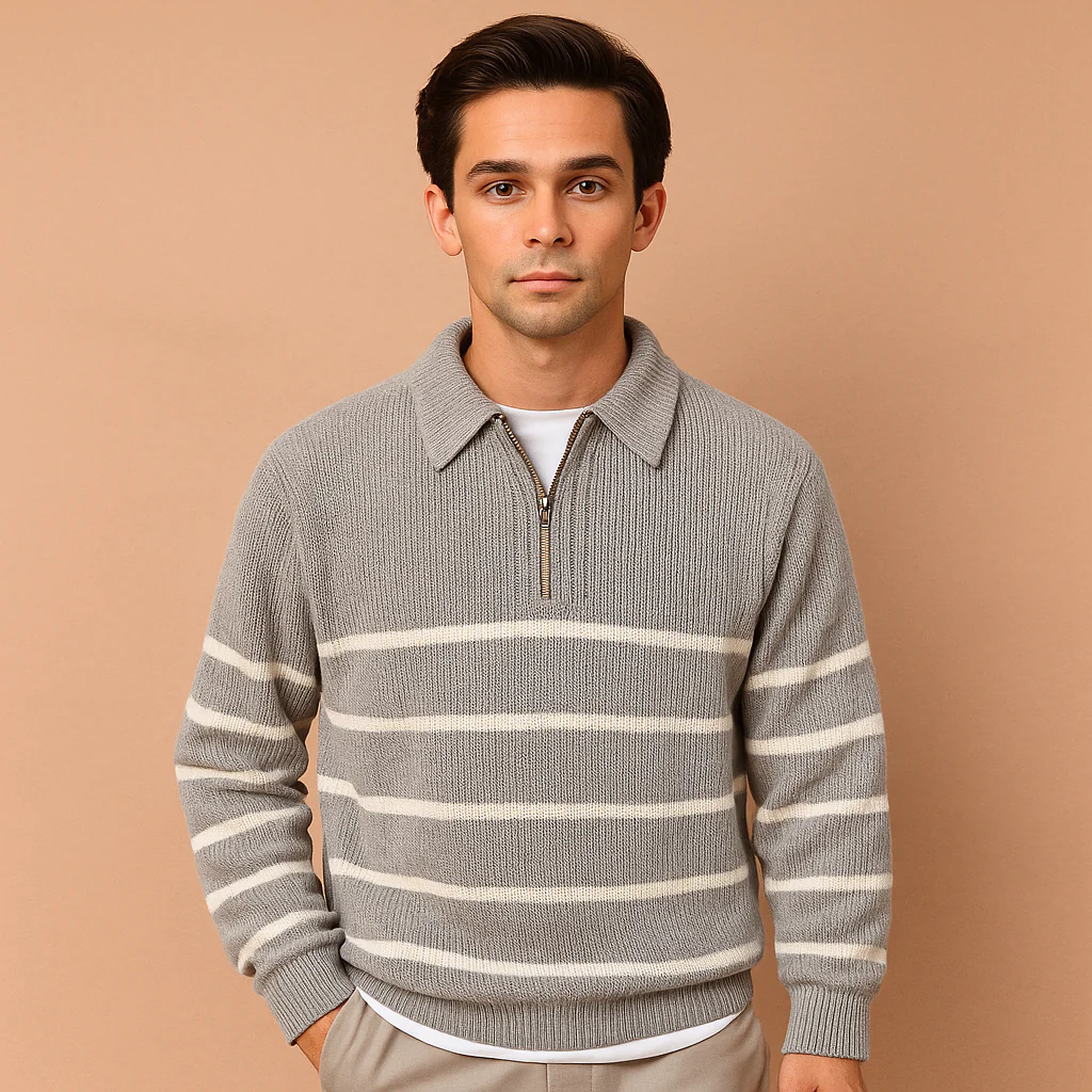 Heren Zip Trui met Halve Rits | Comfortabel en warm met gestreept patroon