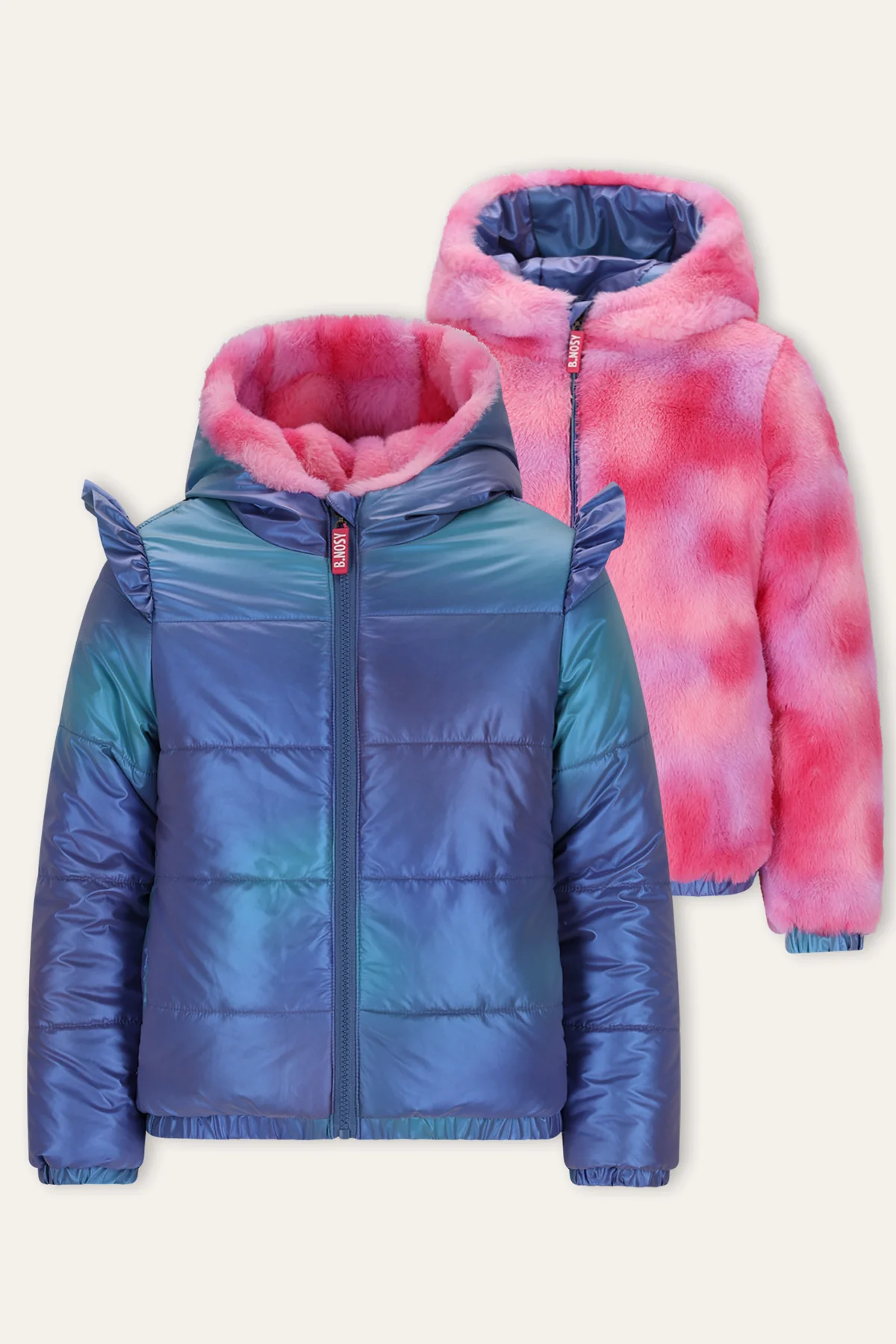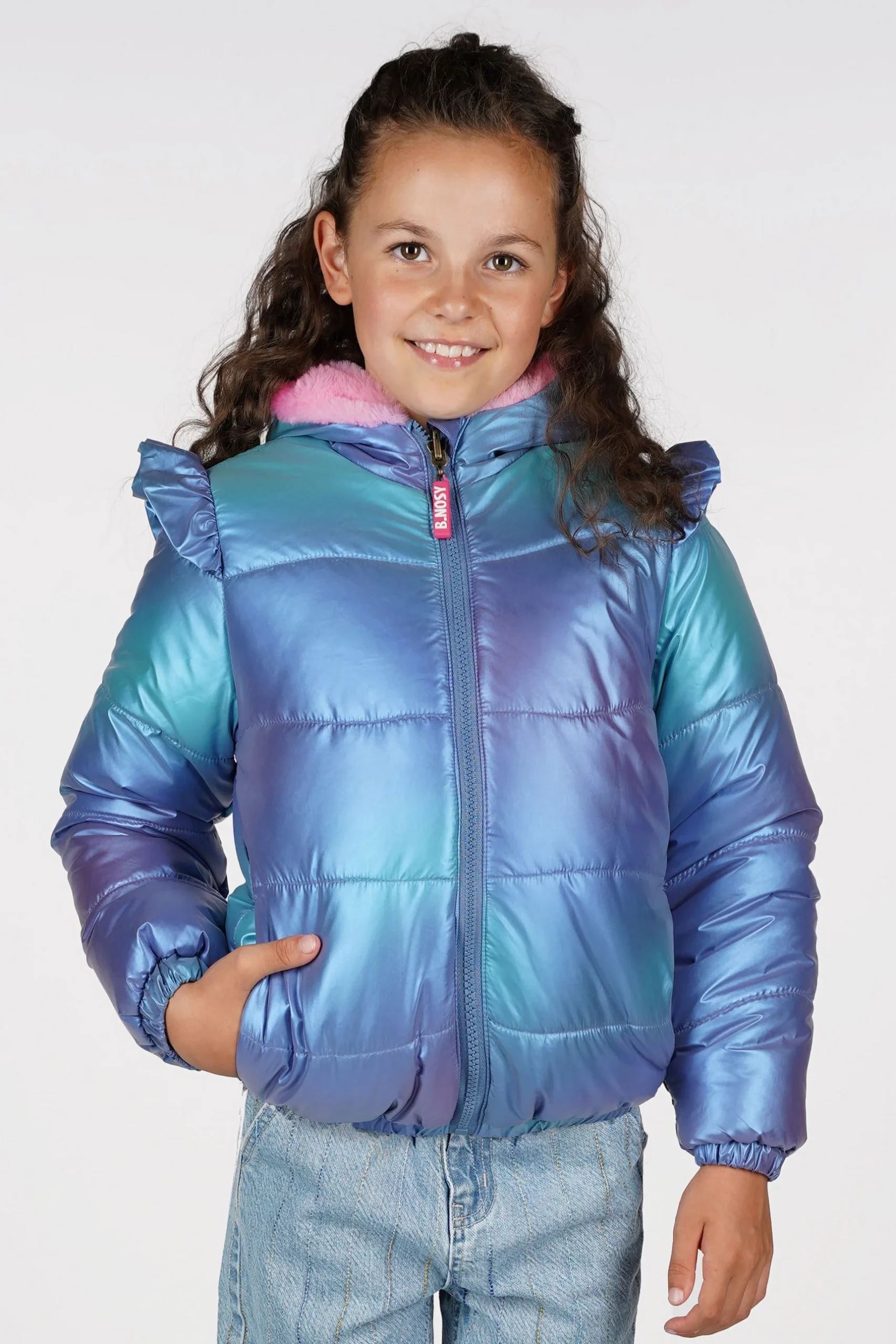 De B.Nosy Joy Jas is een speelse jas in blauw met een mooi gradient effect. Gemaakt van gerecycled polyester en perfect te combineren met andere B.Nosy kleding. Deze reversible jas, met aan de andere kant een zachte fake fur, brengt stijl en comfort samen. Een must-have voor elke wintergarderobe vol avontuur! Scan de QR-code om de reis van het kledingstuk te ontdekken!