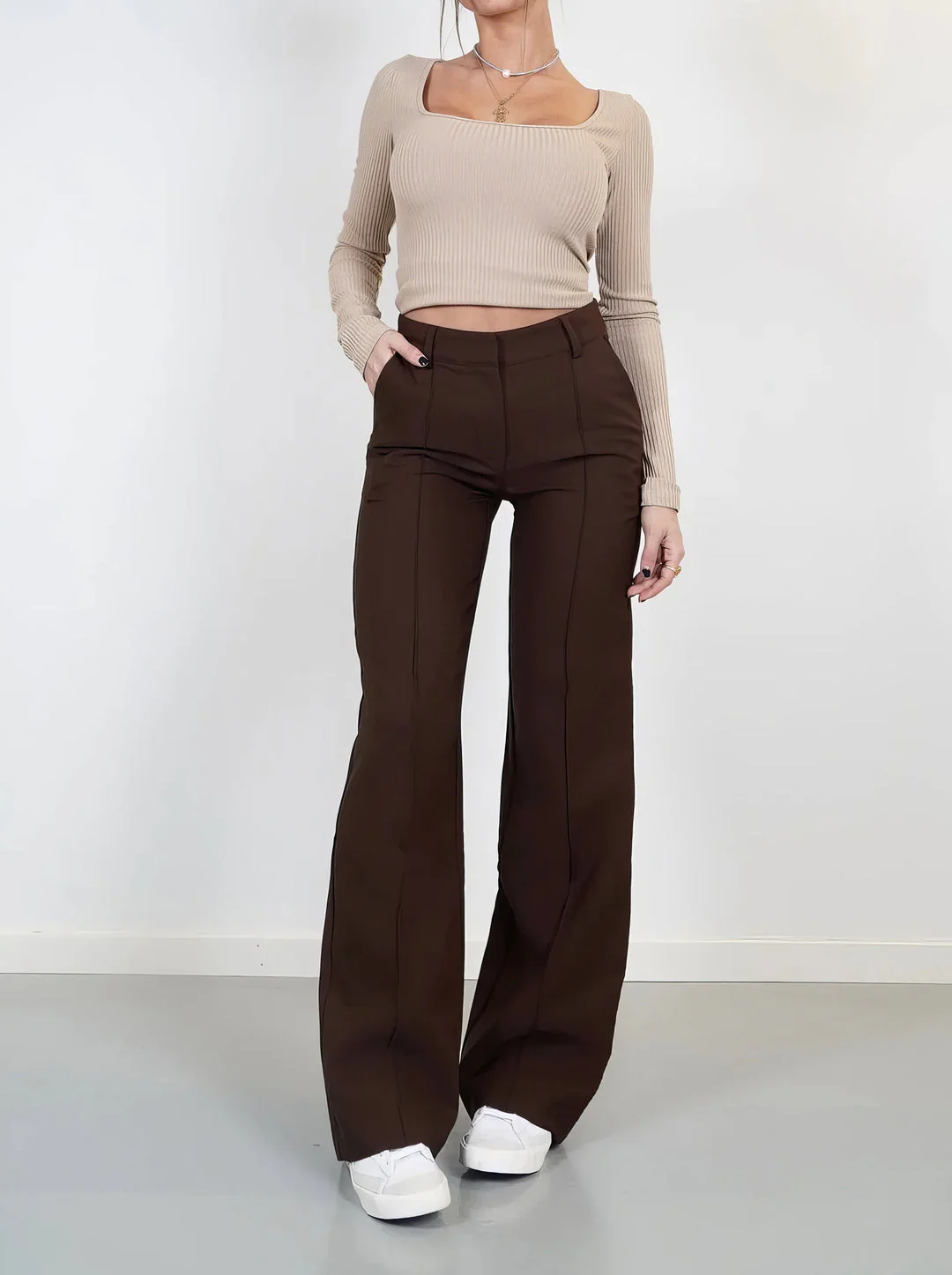 Lioren tilt je garderobe moeiteloos naar een hoger niveau. Deze wijde broek straalt elegantie uit in elke situatie – van een zakelijke afspraak tot een ontspannen middag in de stad. Dankzij de flatterende snit, soepel vallende stof en praktische details is Lioren een veelzijdige essential voor elke dag.