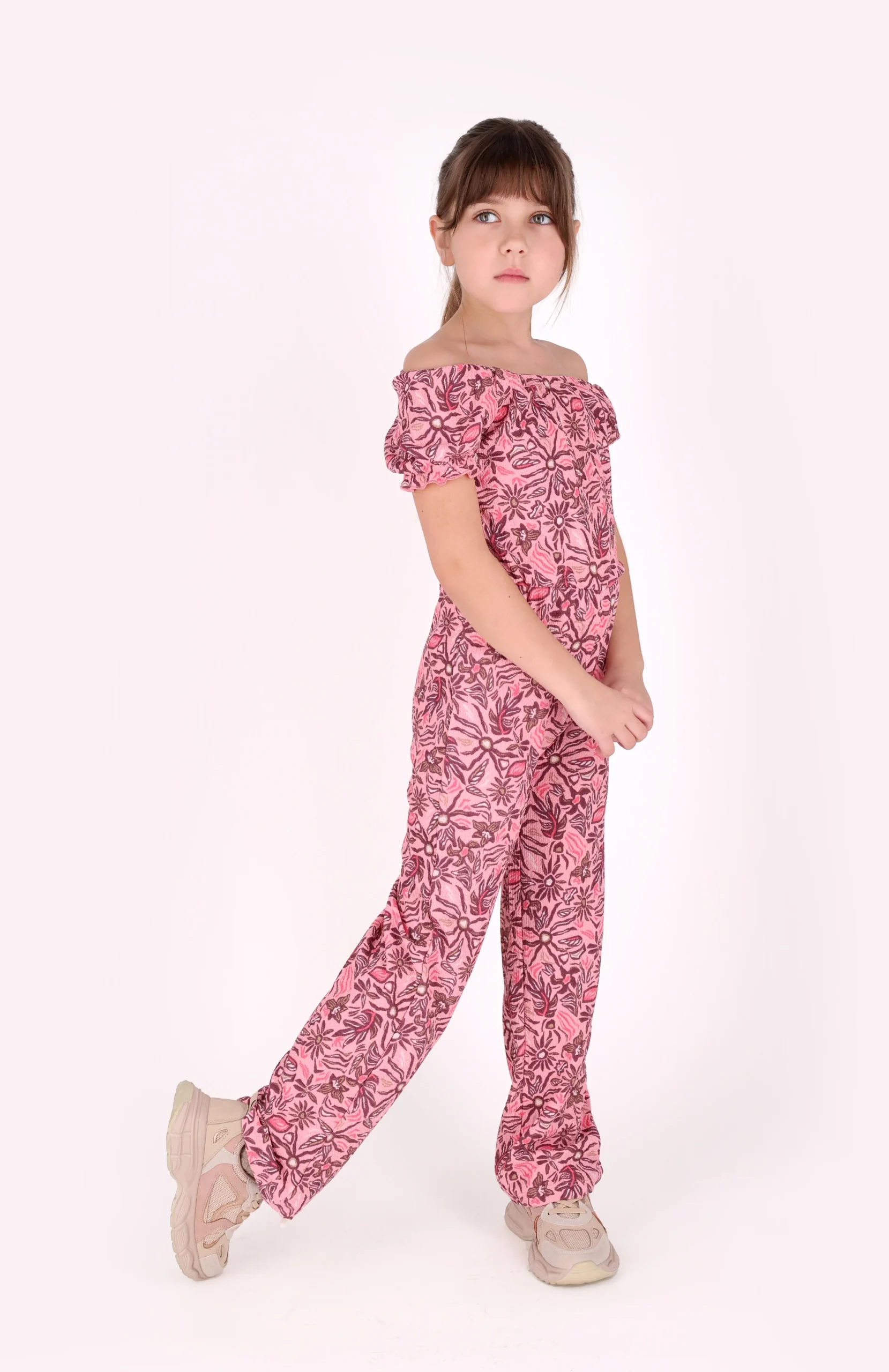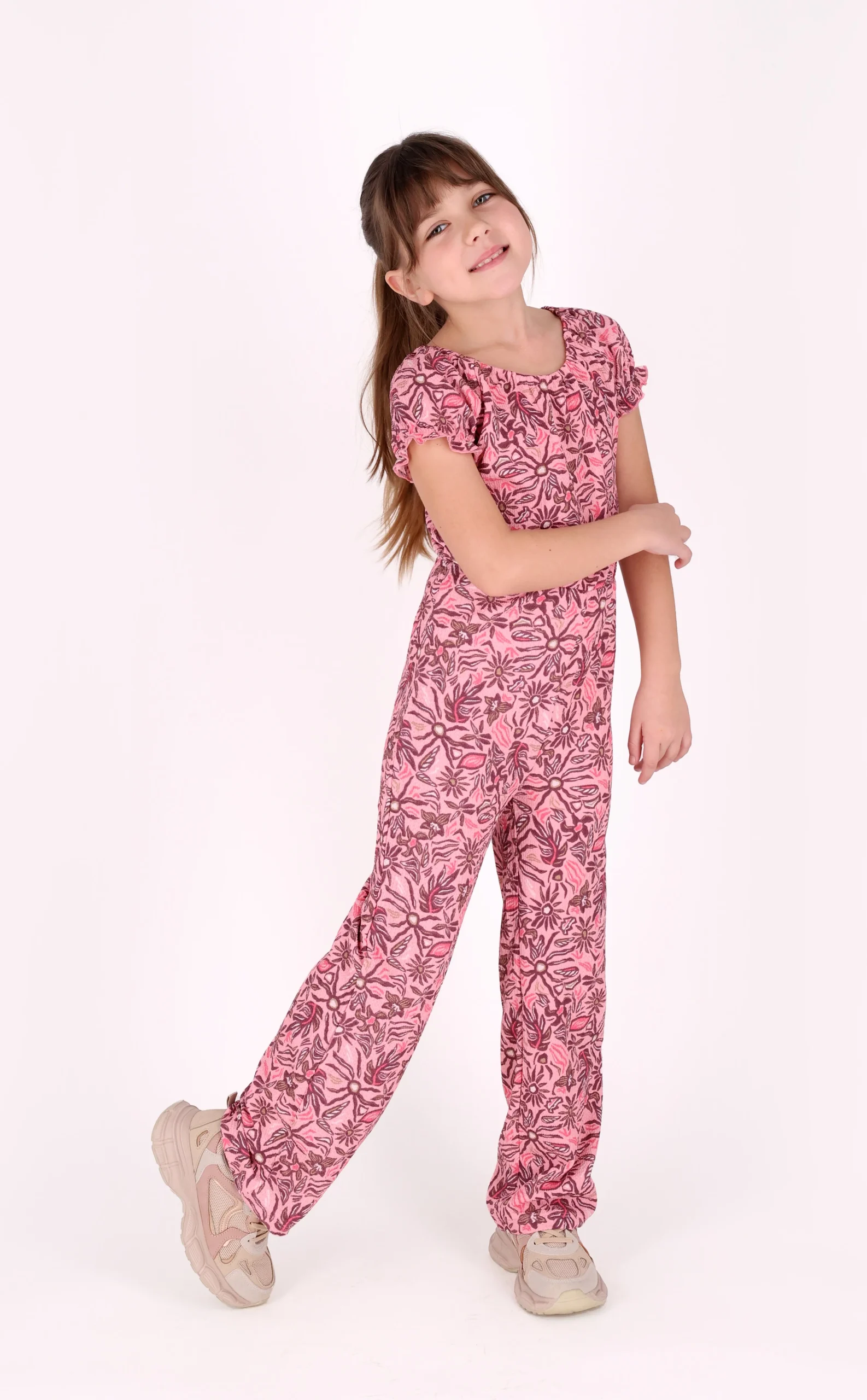 Een vrolijke bloemen jumpsuit van B.Nosy, perfect voor jouw kleine meid! Deze jumpsuit is uitgevoerd in een speelse bloemenprint op een zachte roze achtergrond. Dankzij de structuur van de stof met stretch en de pofmouwen ziet deze jumpsuit er trendy uit. Bovendien is de jumpsuit makkelijk aan te trekken door de rek in de stof. Een must-have voor een stralende outfit!