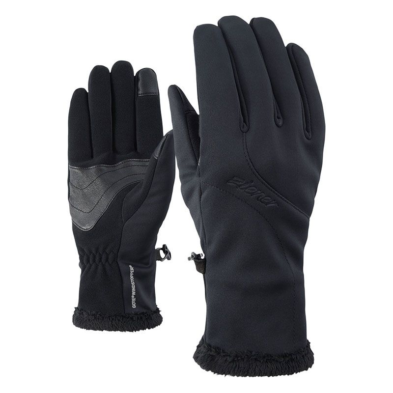 De klassieke ZIENER multifunctionele handschoenen INOLA GTX INF TOUCH LADY gemaakt van softshell-materiaal zijn uitgerust met zachte en warme pluche voering, die ook zichtbaar is op de manchetten. Ze scoren punten met de GORE-TEX INFINIUM ™ producttechnologie – dit maakt ze volledig winddicht, waterafstotend en ademend. Lederen patches op de handpalmen zorgen voor extra versteviging, perfecte robuustheid en hoge grip. Met de geïntegreerde TOUCH-functie kunnen aanraakschermen worden bediend zonder de handschoenen te verwijderen. Het elastiek zorgt voor een comfortabele pasvorm en een goede grip op de polsen. Bevat niet-textiele delen van dierlijke oorsprong.